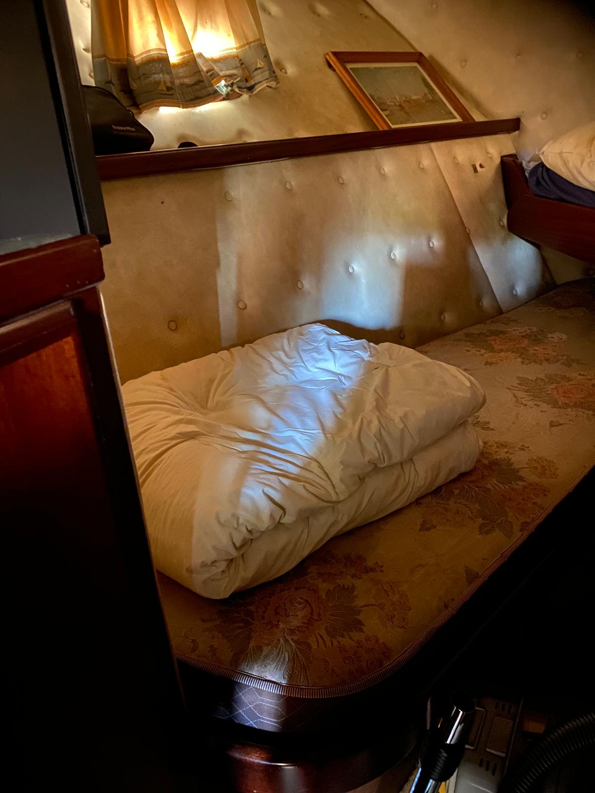 Im Schlafbereich bieten zwei komfortable Kabinen jedem Passagier einen privaten Rückzugsort – perfekt zum Entspannen und für ungestörte Ruhe. Draußen lädt eine großzügige überdachte Terrasse, die bei jedem Wetter genutzt werden kann, zum Verweilen ein und erweitert den Wohnbereich auf angenehme Weise.