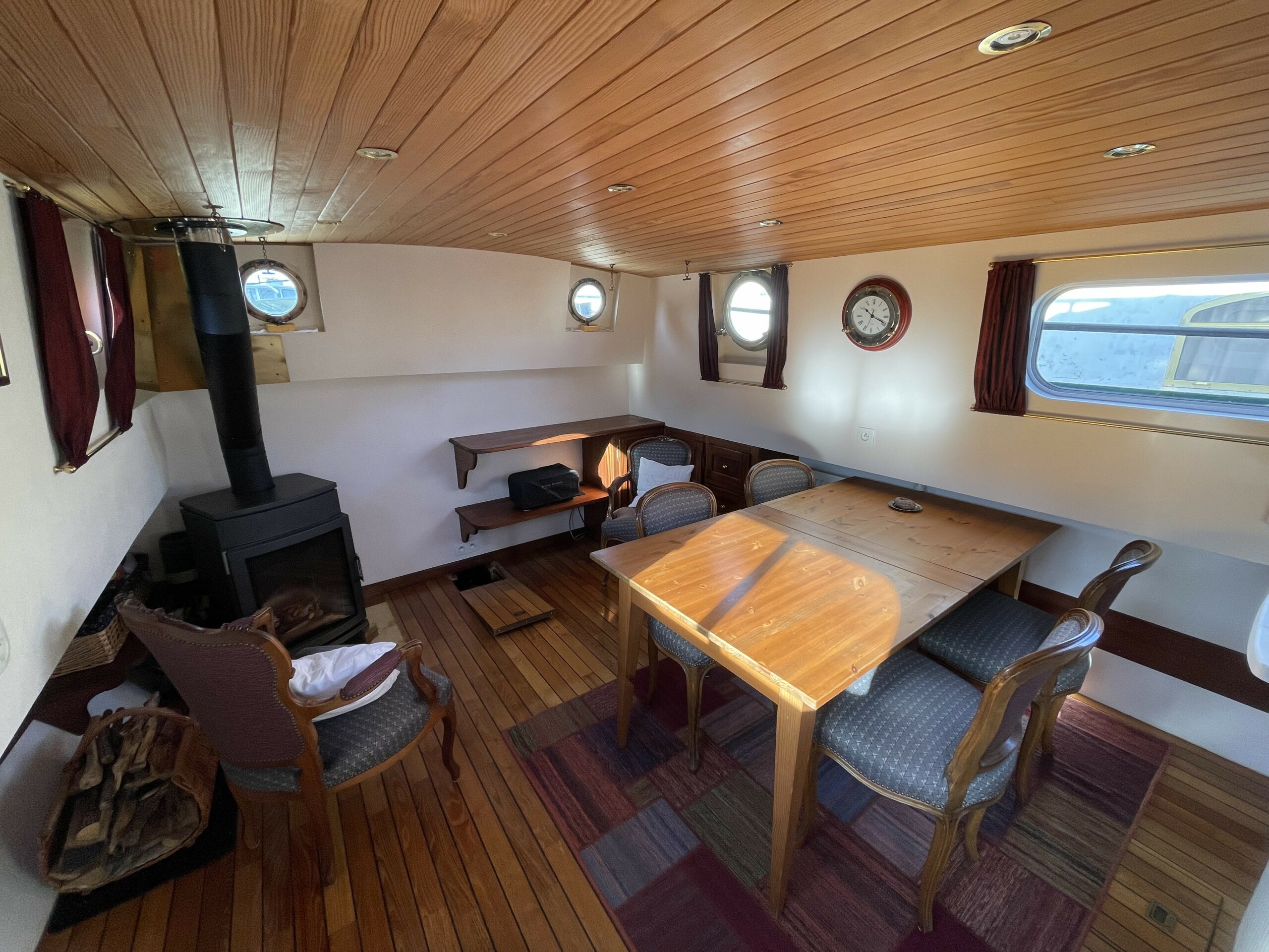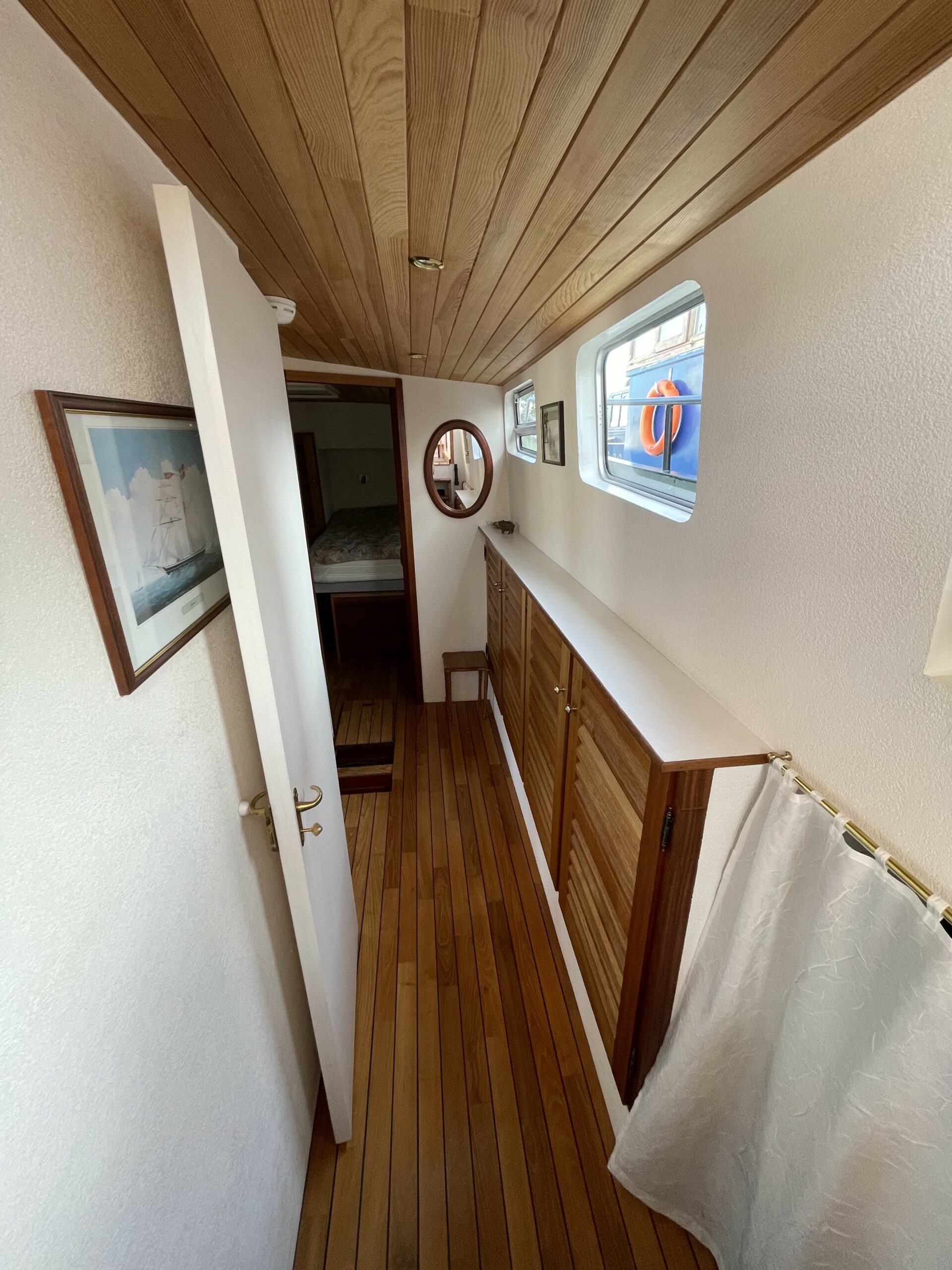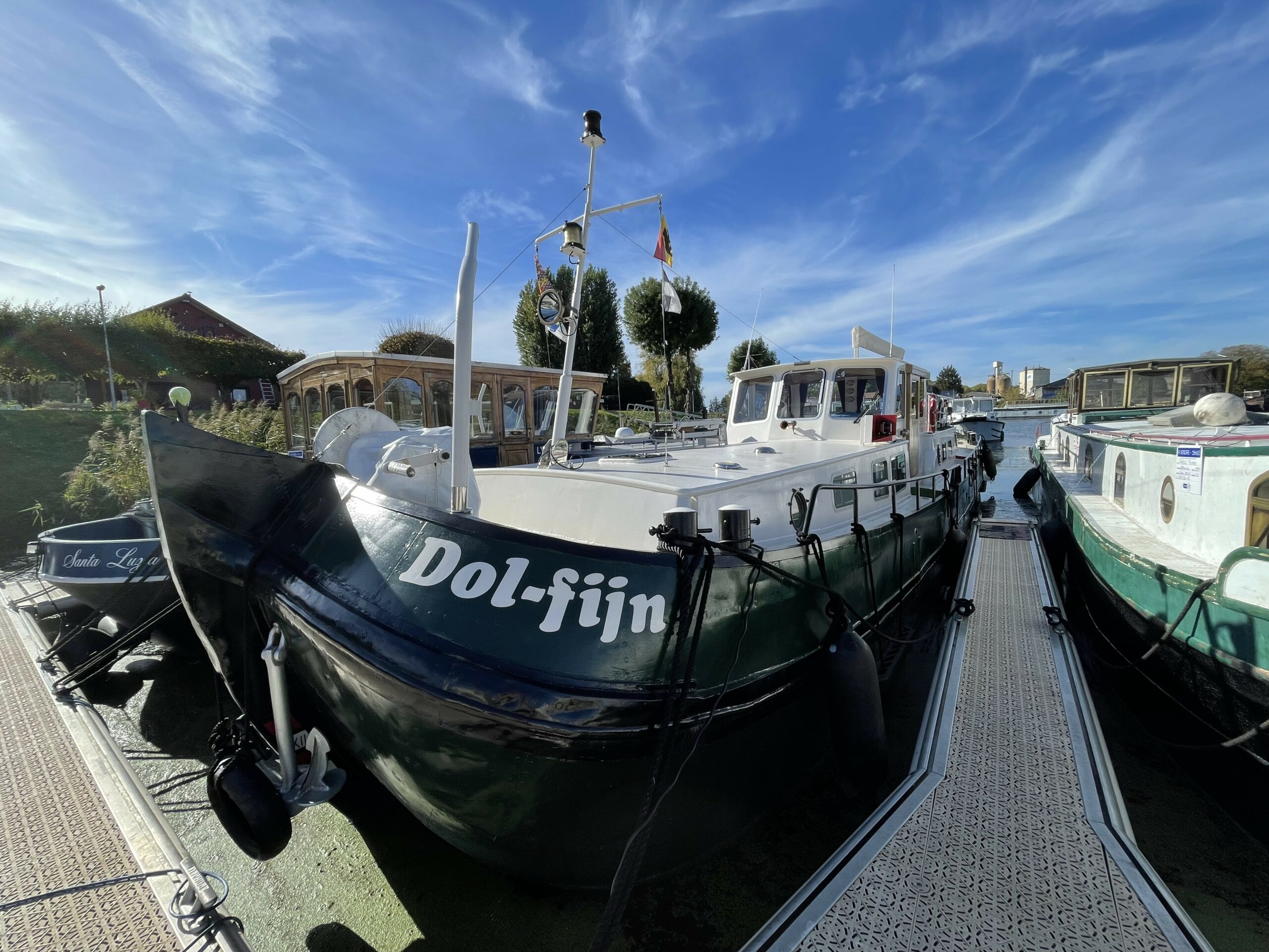 Dieser wunderschöne, 19 Meter lange Tjalk aus dem Jahr 1910 besticht durch seine Authentizität und seine großzügigen Abmessungen. Er verfügt über eine große, mit einer Sonnenplane überdachte Terrasse sowie ein Steuerhaus mit zwei Seitentüren. Im Inneren befinden sich ein geräumiger Salon mit Einbauküche und zwei Doppelkabinen im Bug, die jeweils über ein separates WC und eine Dusche verfügen. Zahlreiche Stauräume optimieren den Wohnraum.