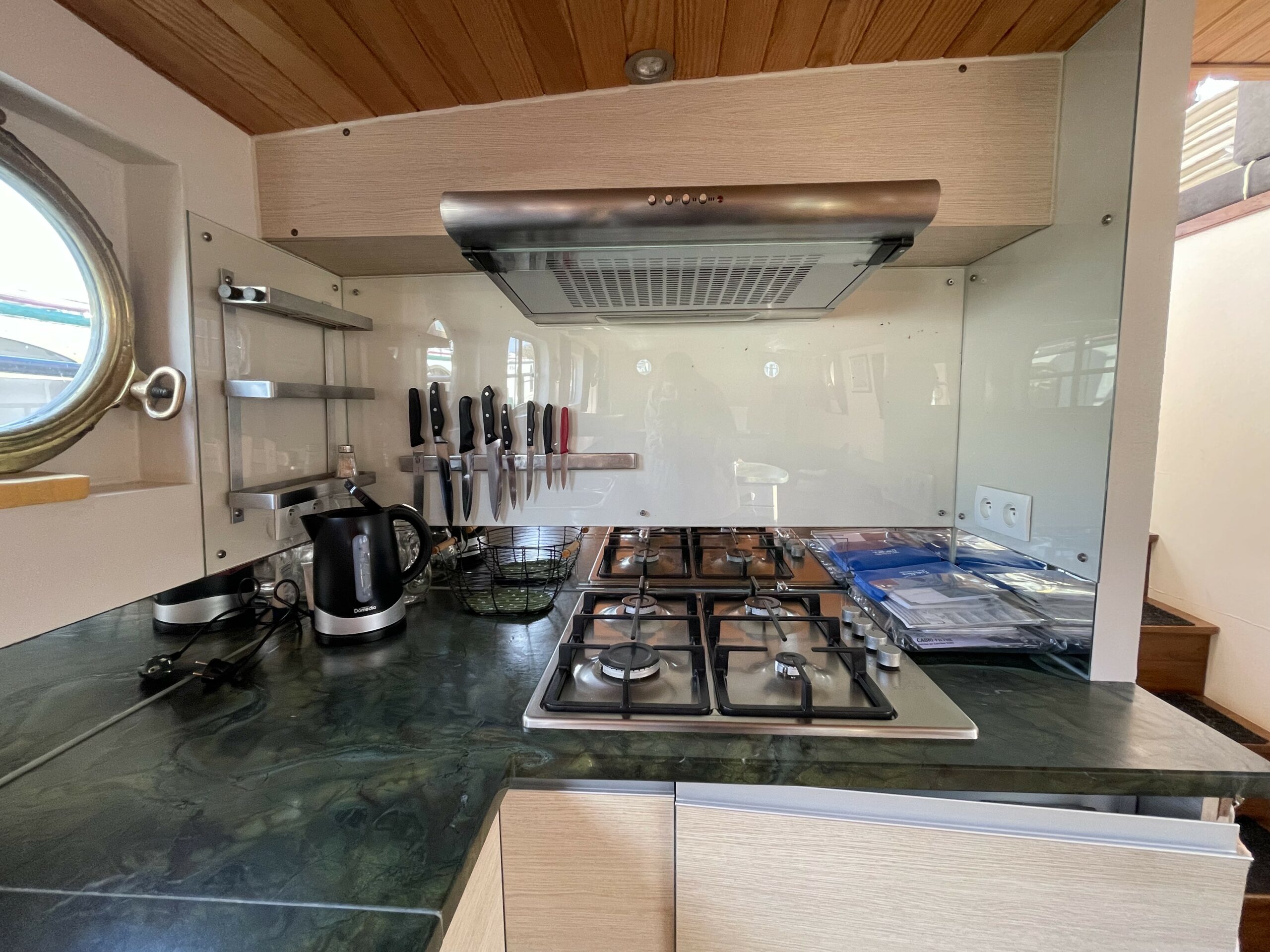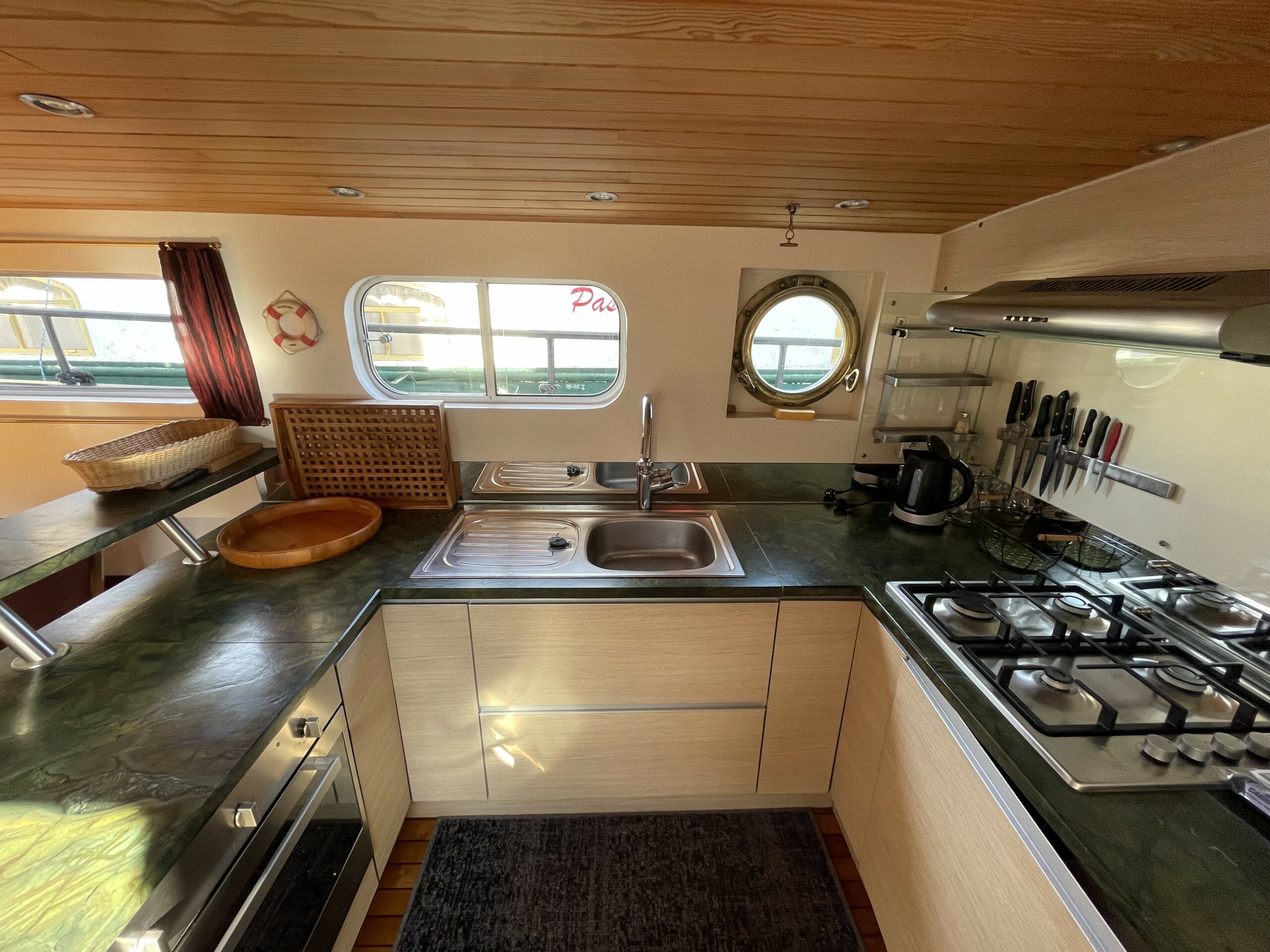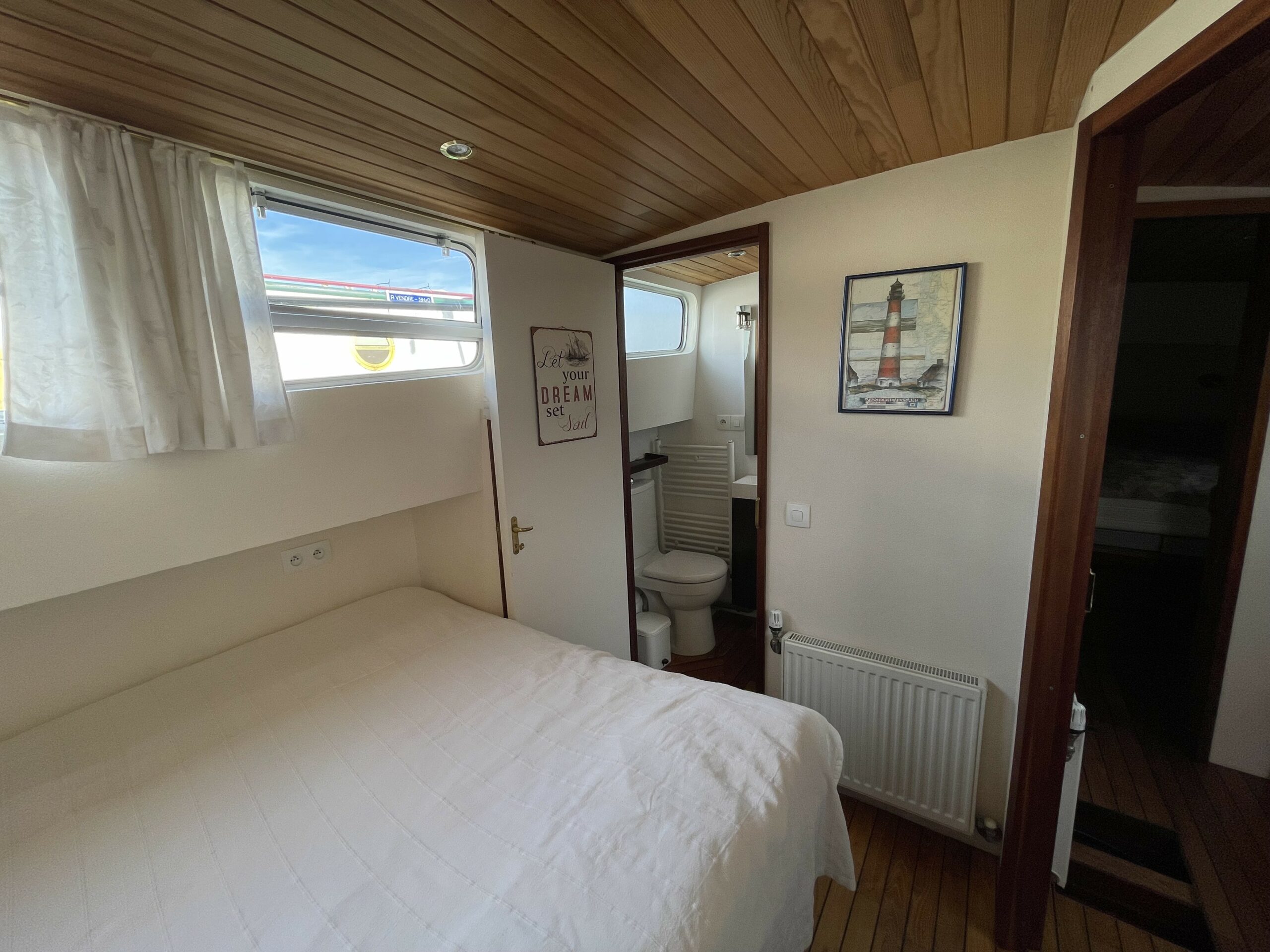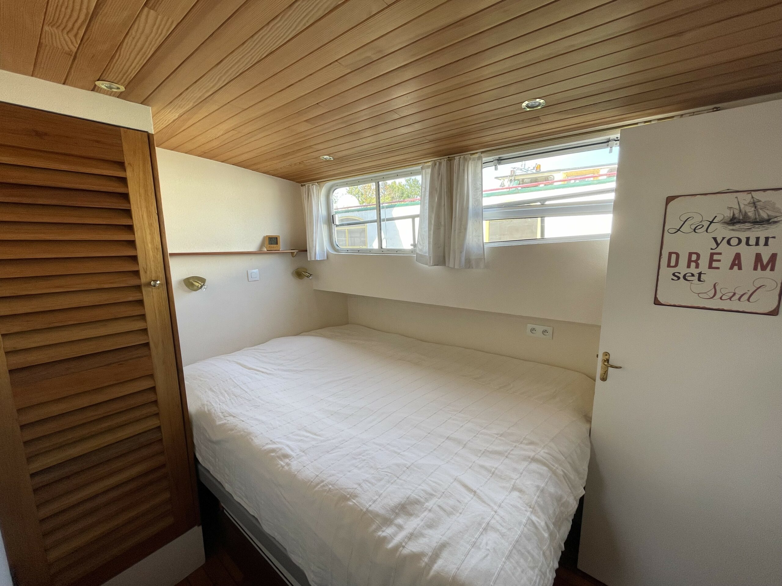 Dieser wunderschöne, 19 Meter lange Tjalk aus dem Jahr 1910 besticht durch seine Authentizität und seine großzügigen Abmessungen. Er verfügt über eine große, mit einer Sonnenplane überdachte Terrasse sowie ein Steuerhaus mit zwei Seitentüren. Im Inneren befinden sich ein geräumiger Salon mit Einbauküche und zwei Doppelkabinen im Bug, die jeweils über ein separates WC und eine Dusche verfügen. Zahlreiche Stauräume optimieren den Wohnraum.