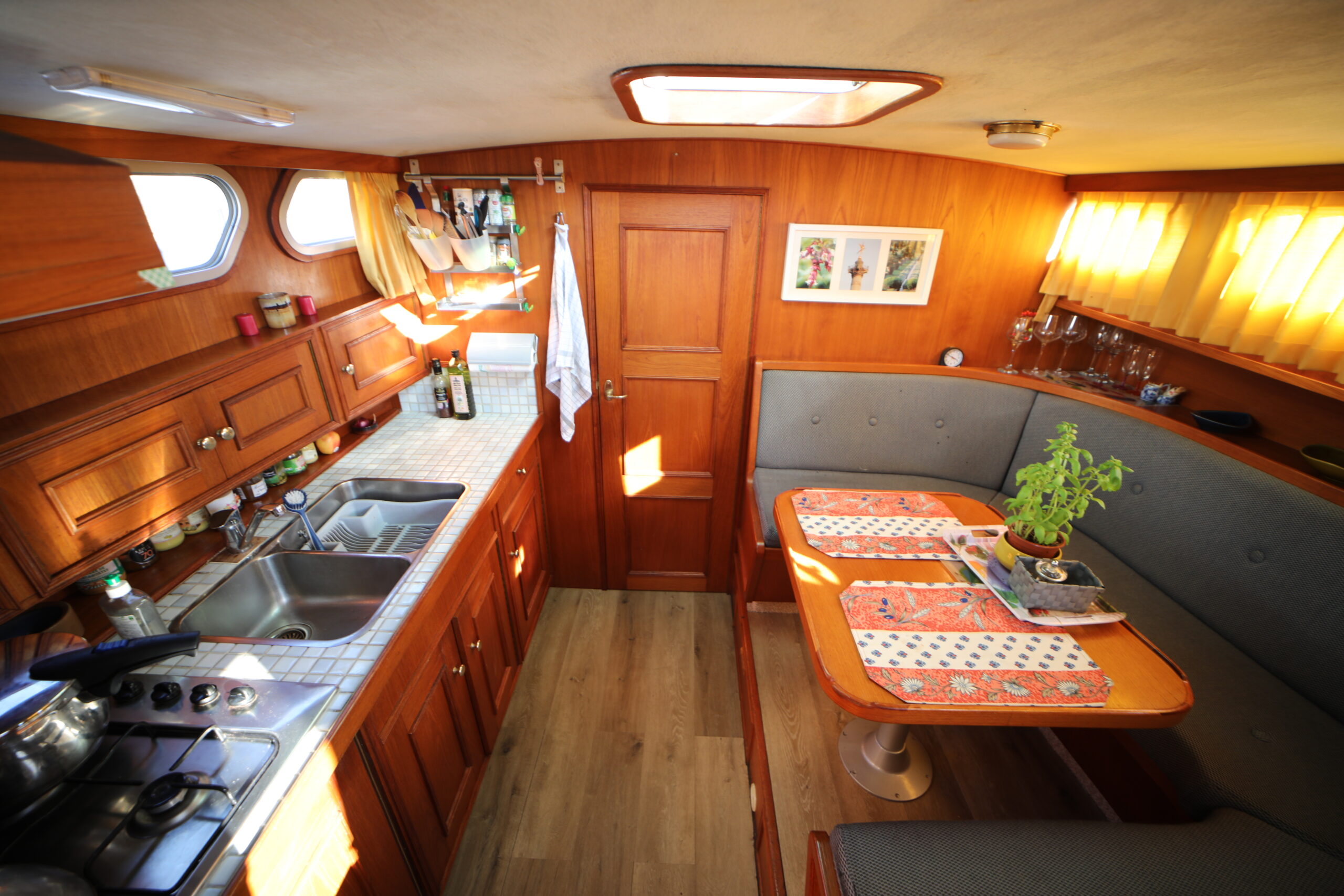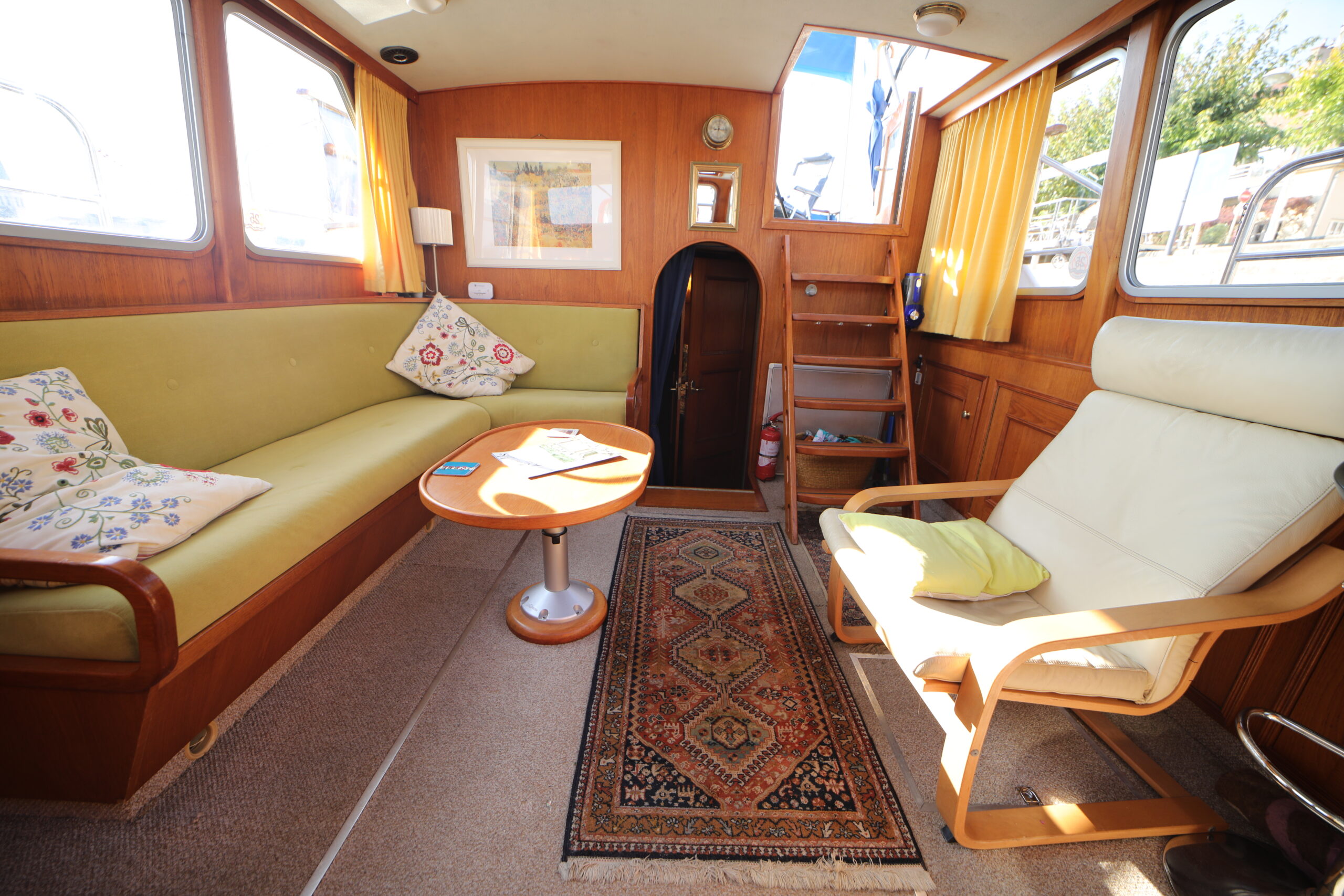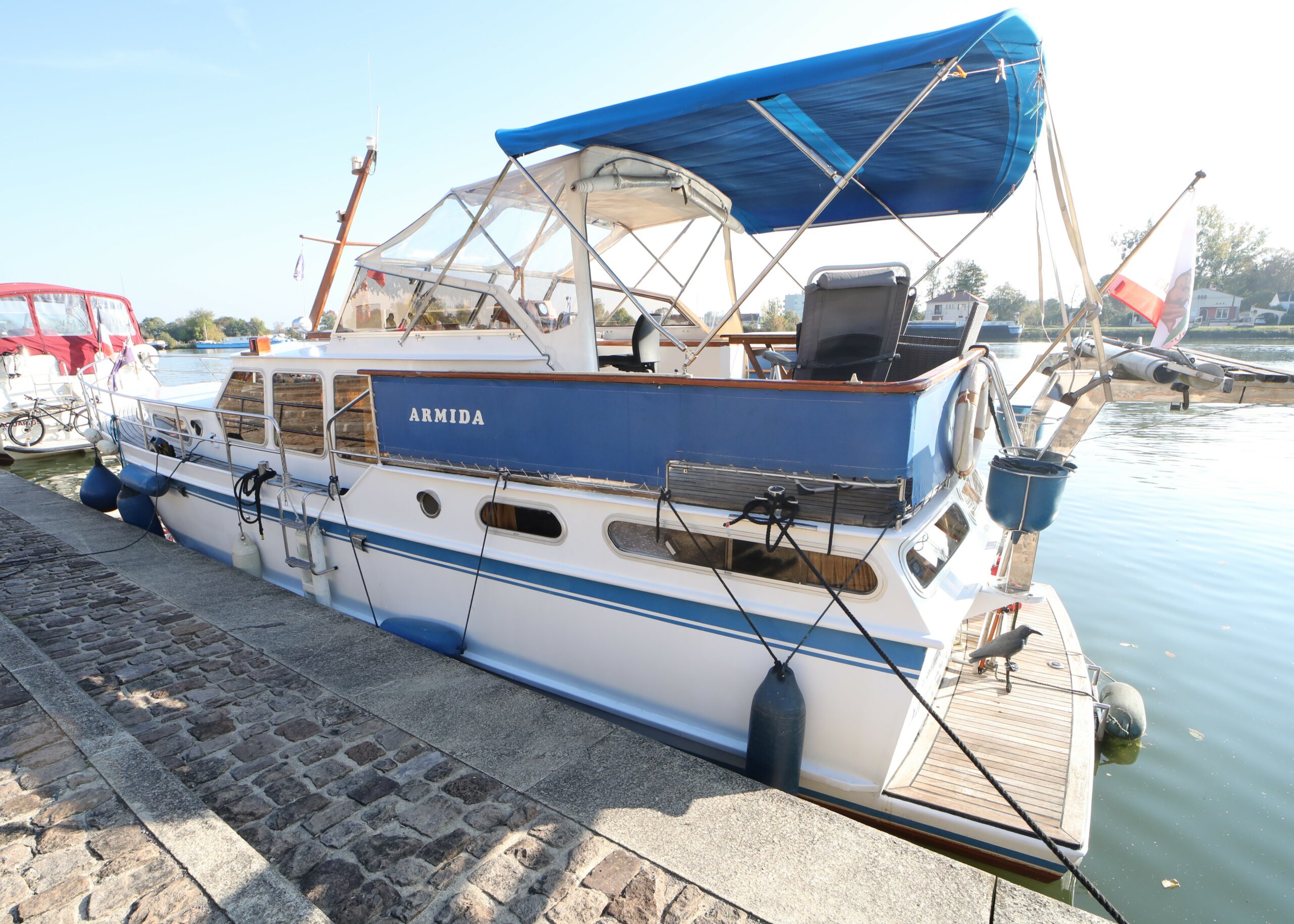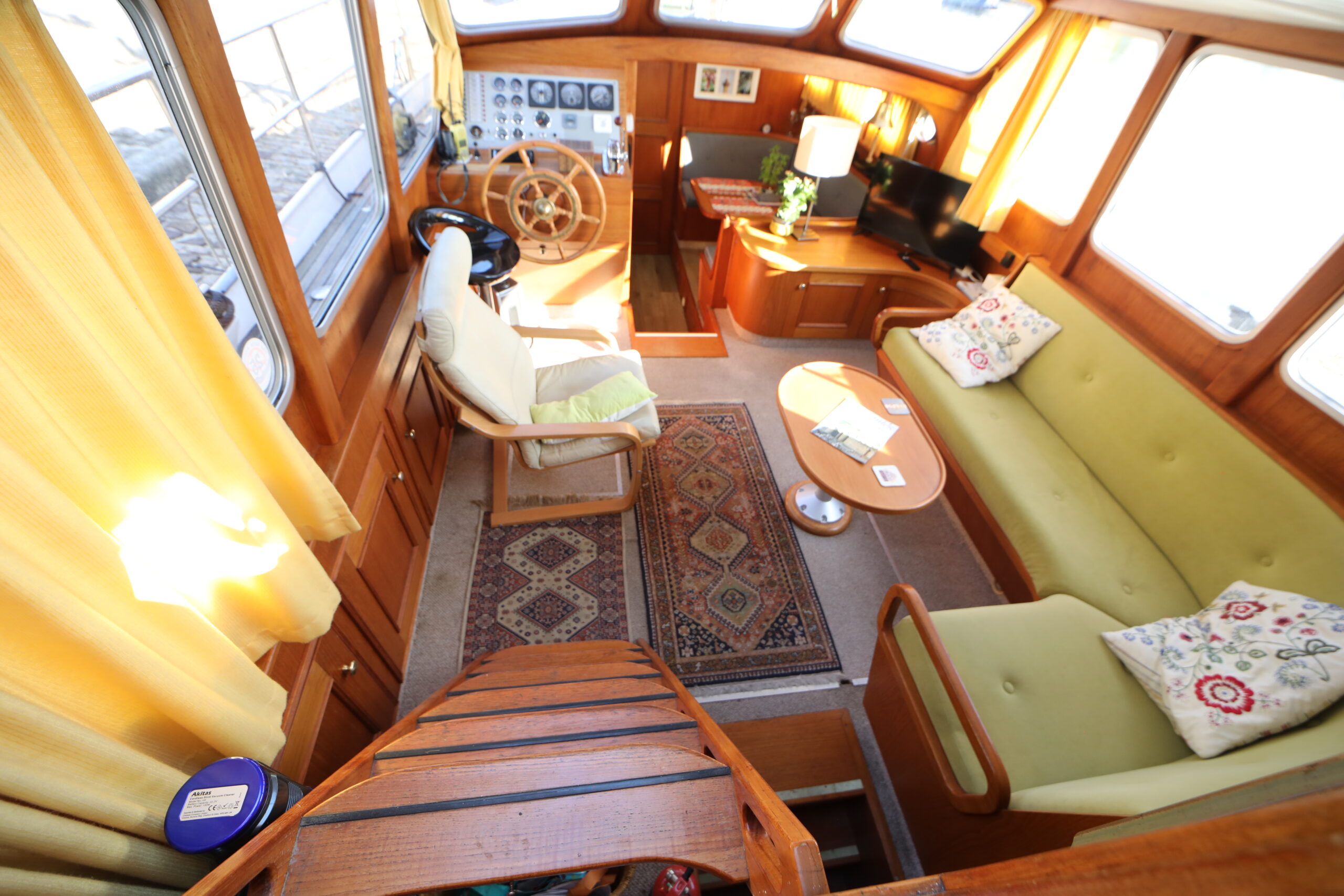 Mit einer Länge von 12 Metern bietet das Boot ein warmes und funktionales Interieur mit einem hellen, geräumigen Salon und Essbereich, einer vollständig ausgestatteten Küche, zwei komfortablen Kabinen sowie einem Badezimmer mit Dusche und WC. Darüber hinaus bildet der großzügige Außensteuerstand, der durch ein Verdeck geschützt ist, einen zusätzlichen Wohnbereich – ideal, um die Zeit im Freien in vollen Zügen zu genießen.