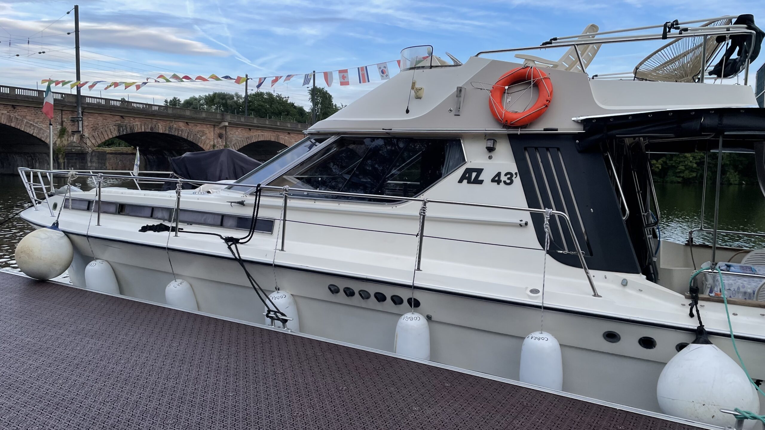 Entdecken Sie diese wunderschöne italienische Azimut 43 Yacht, mit einer Länge von 12,80 Metern und einer Breite von 4,60 Metern, gebaut im Jahr 1980. Diese Yacht vereint elegantes Design, hochwertigen Komfort und exzellente Fahrleistungen und besticht sowohl durch ihren raffinierten Stil als auch durch die italienische Bauqualität.