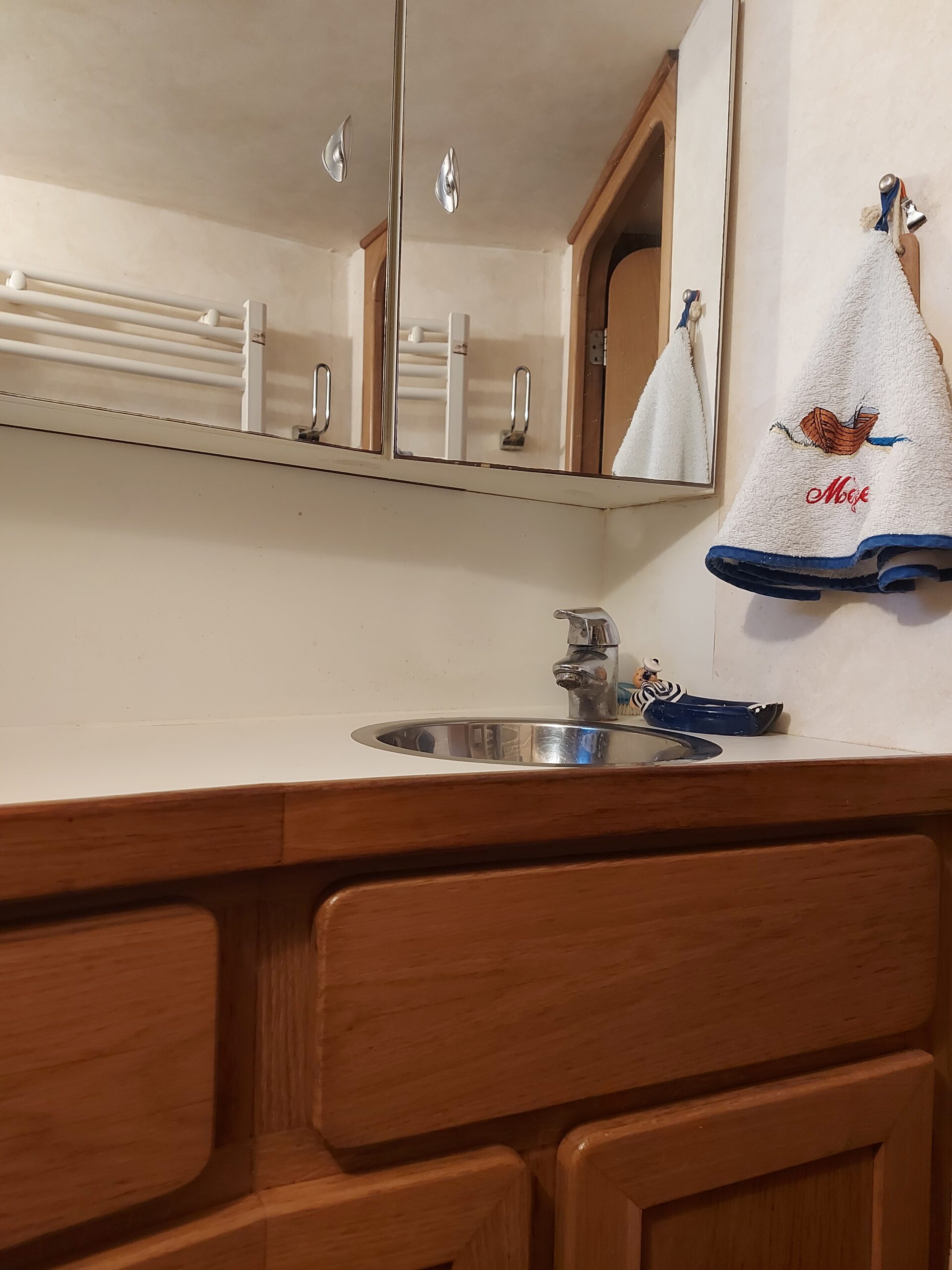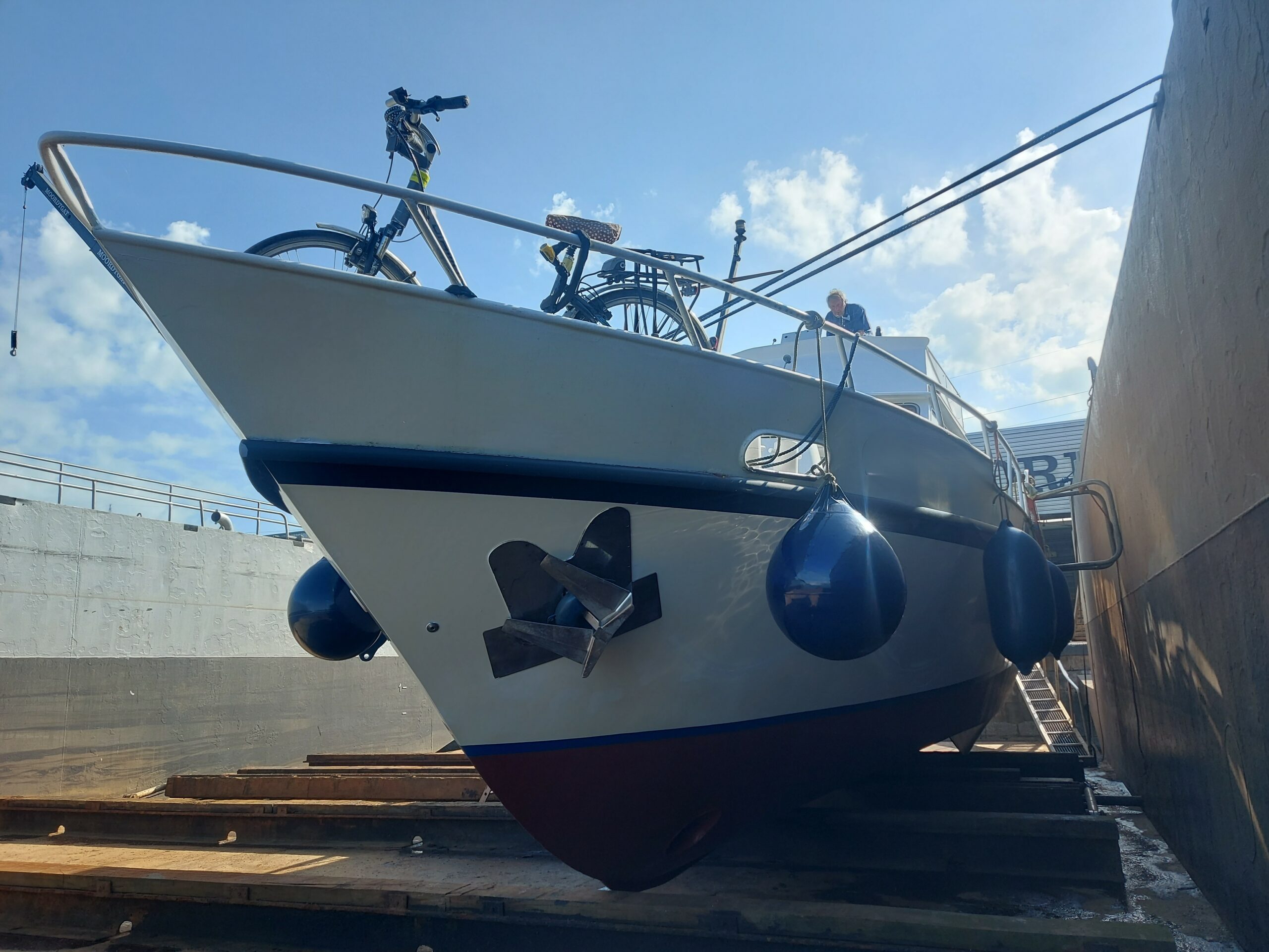 • Einerseits wurden Decks und Seitendecks 2022–2023 vollständig überarbeitet: Abschleifen bis auf das Metall, Zinga-Antikorrosionsbehandlung, zwei Grundanstriche und zwei Deckschichten.