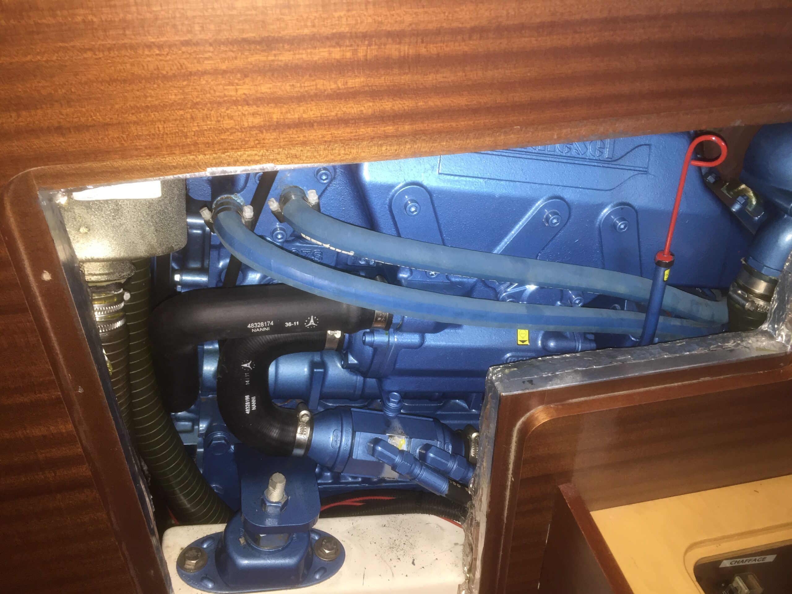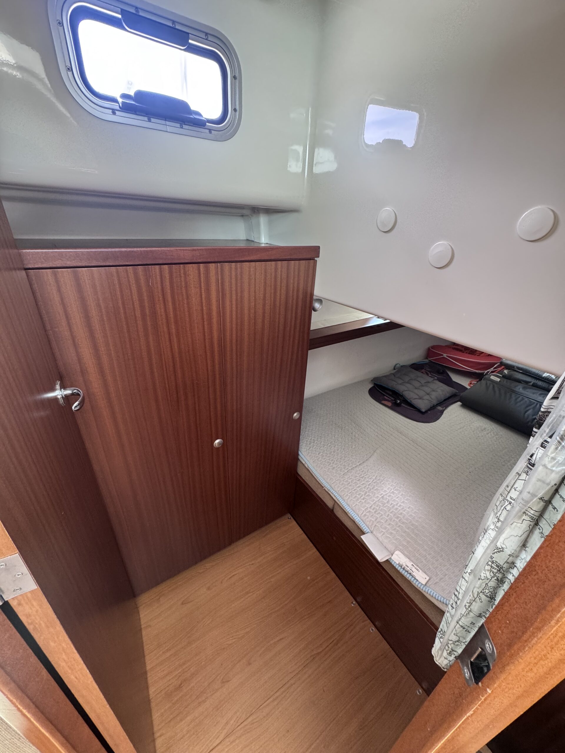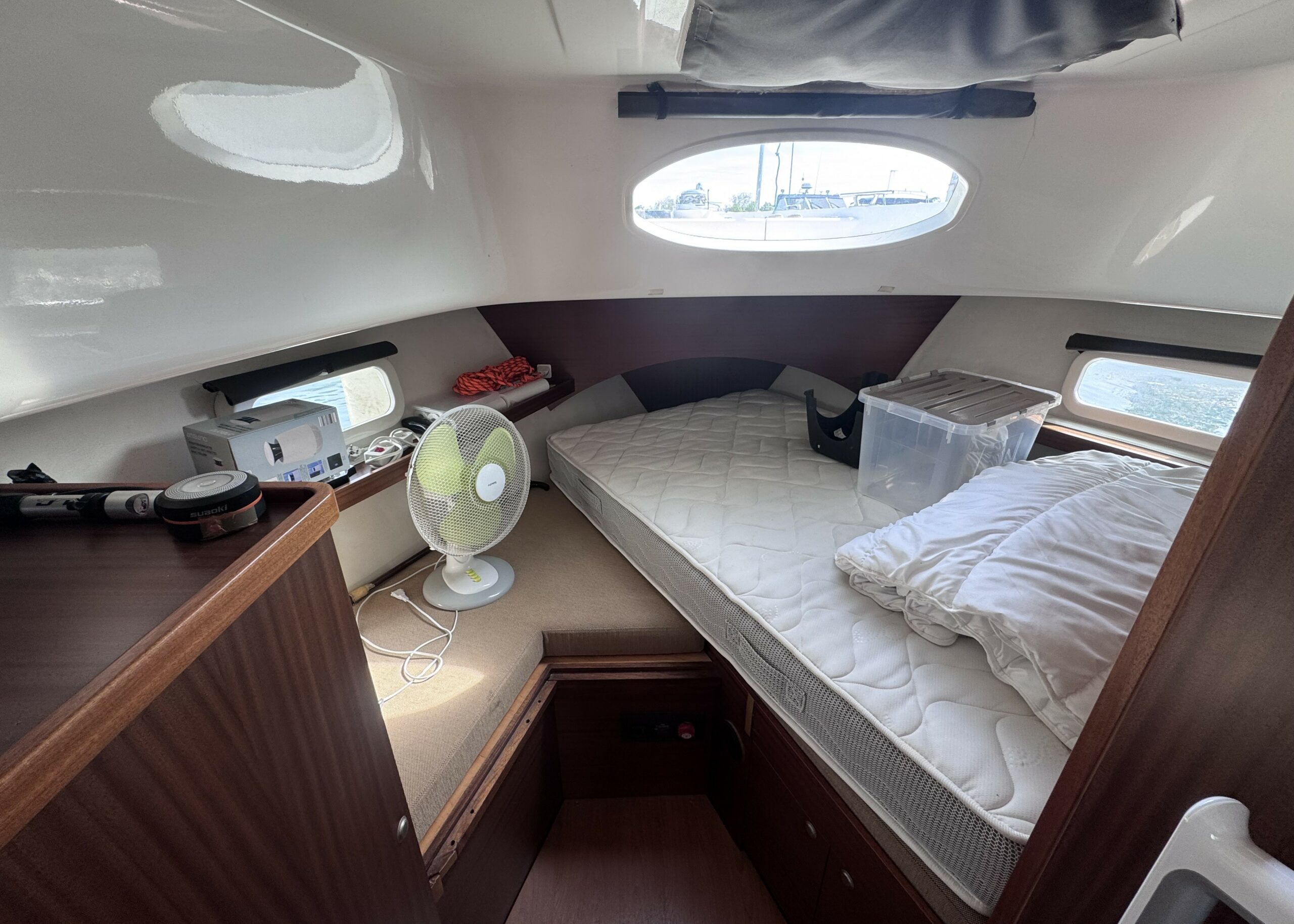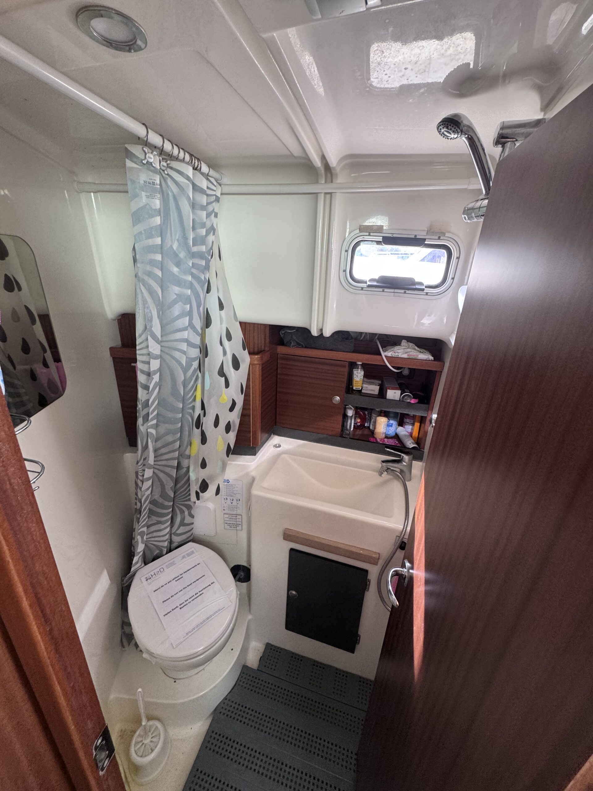 Mit einer Länge von 10,50 Metern und einer Breite von 3,45 Metern bietet sie einen geräumigen und hellen Innenraum, der perfekt auf das Leben an Bord ausgelegt ist. Die Aufteilung umfasst drei Kabinen, die Platz für bis zu 6 Personen bieten. Eine voll ausgestattete Küche sowie ein Badezimmer mit WC runden dieses funktionale und gemütliche Gesamtpaket ab.