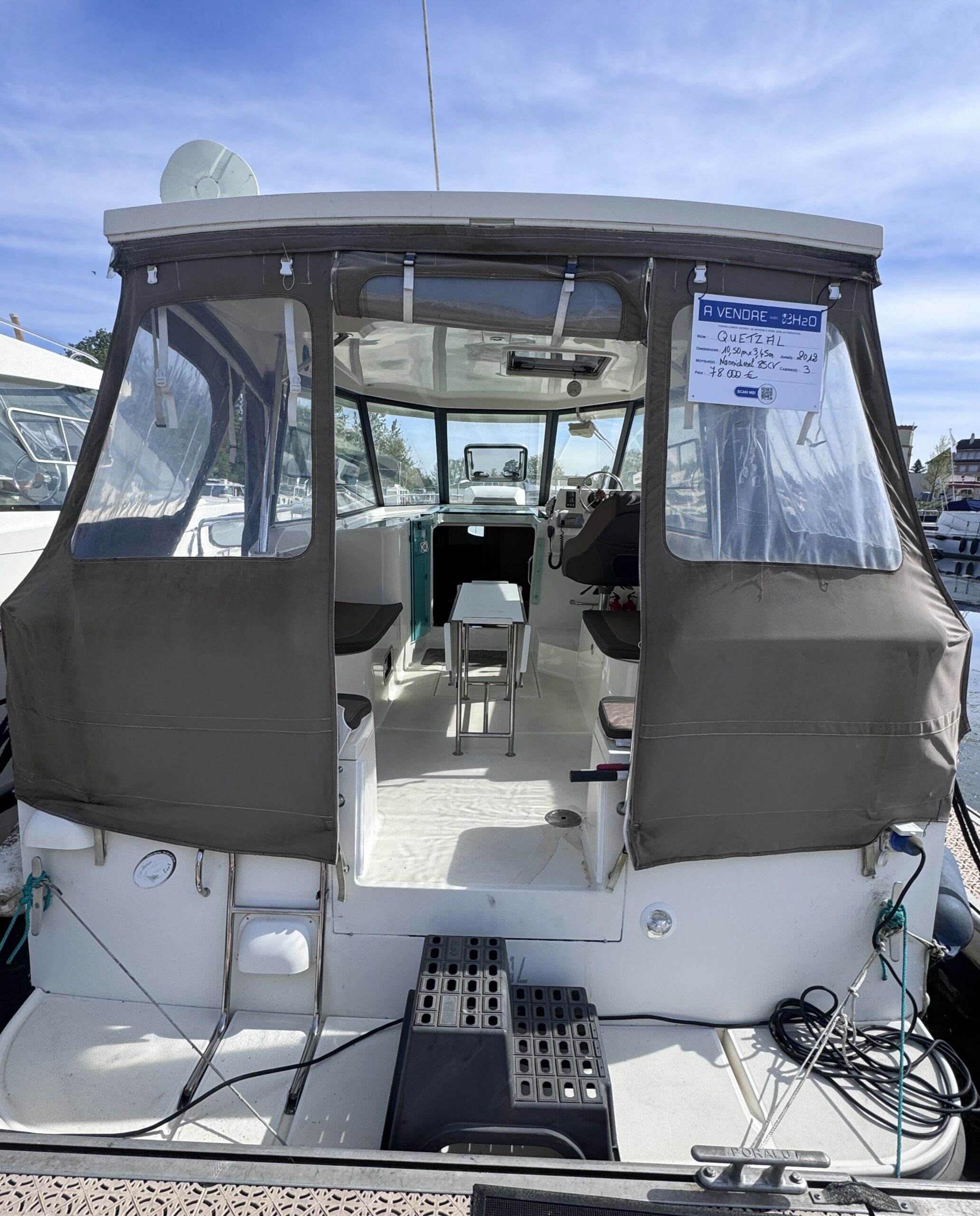 Im Außenbereich bildet die großzügige Terrasse einen echten zusätzlichen Lebensraum, ideal, um die Landschaft während der Fahrt oder vor Anker zu genießen. Sie kann durch eine komplette Persenning vollständig geschützt werden, was bei jedem Wetter angenehmen Komfort bietet.
