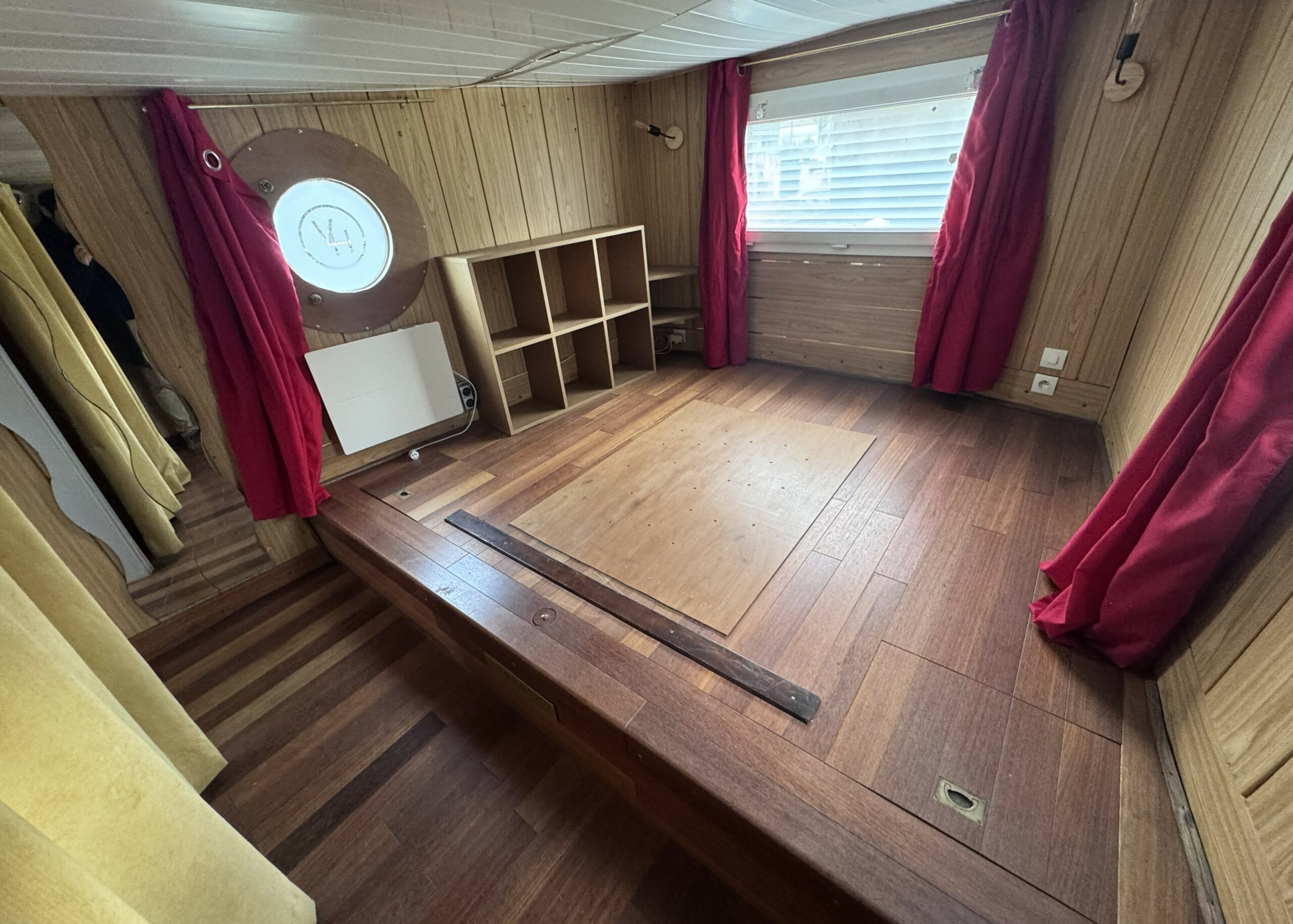 Das Boot verfügt über zwei derzeit leere Kabinen, die Sie ganz nach Ihren Wünschen und Bedürfnissen einrichten können: komfortable Schlafzimmer, Büro, Ankleidezimmer oder Werkstatt – alles ist möglich, um ein Interieur ganz nach Ihrem Geschmack zu schaffen.