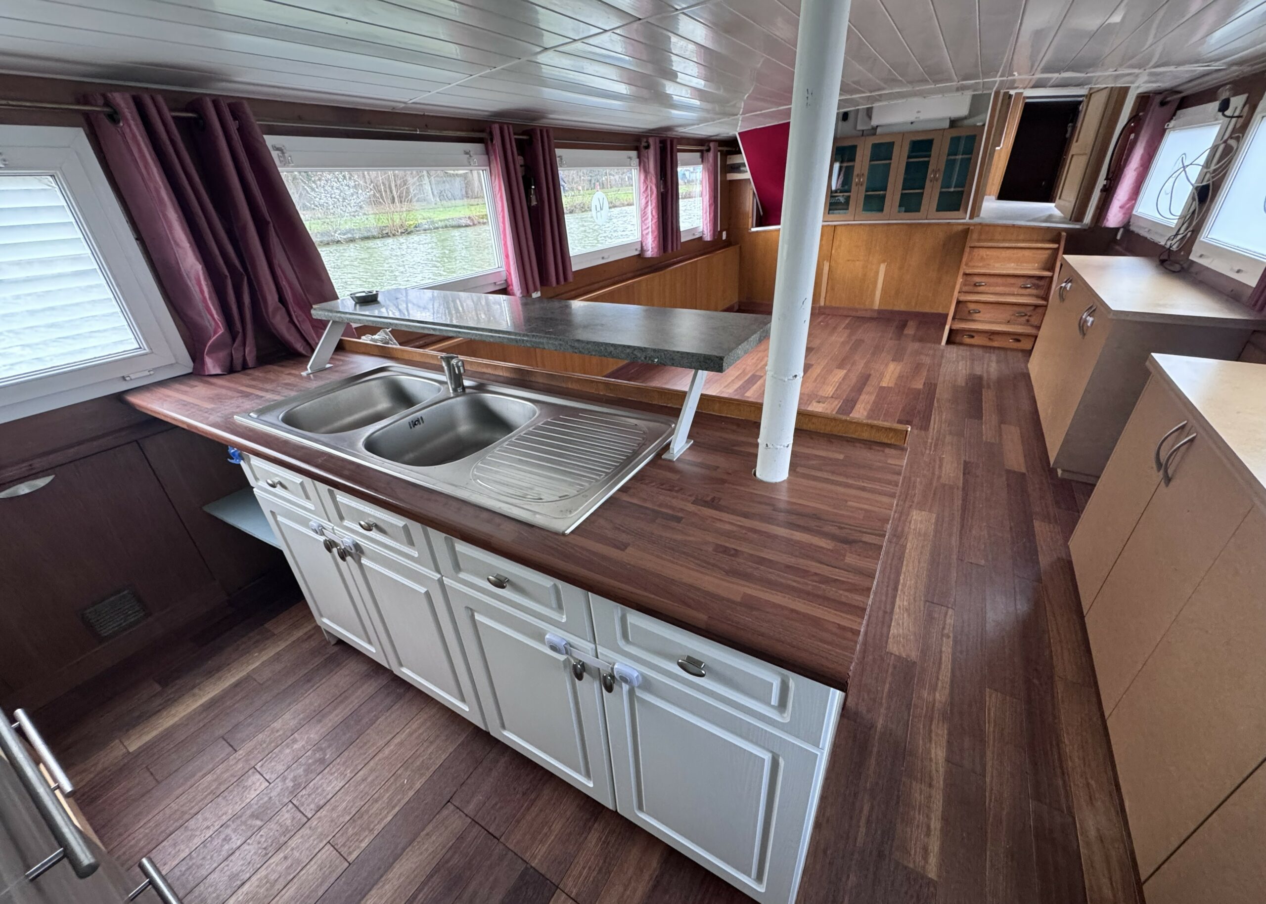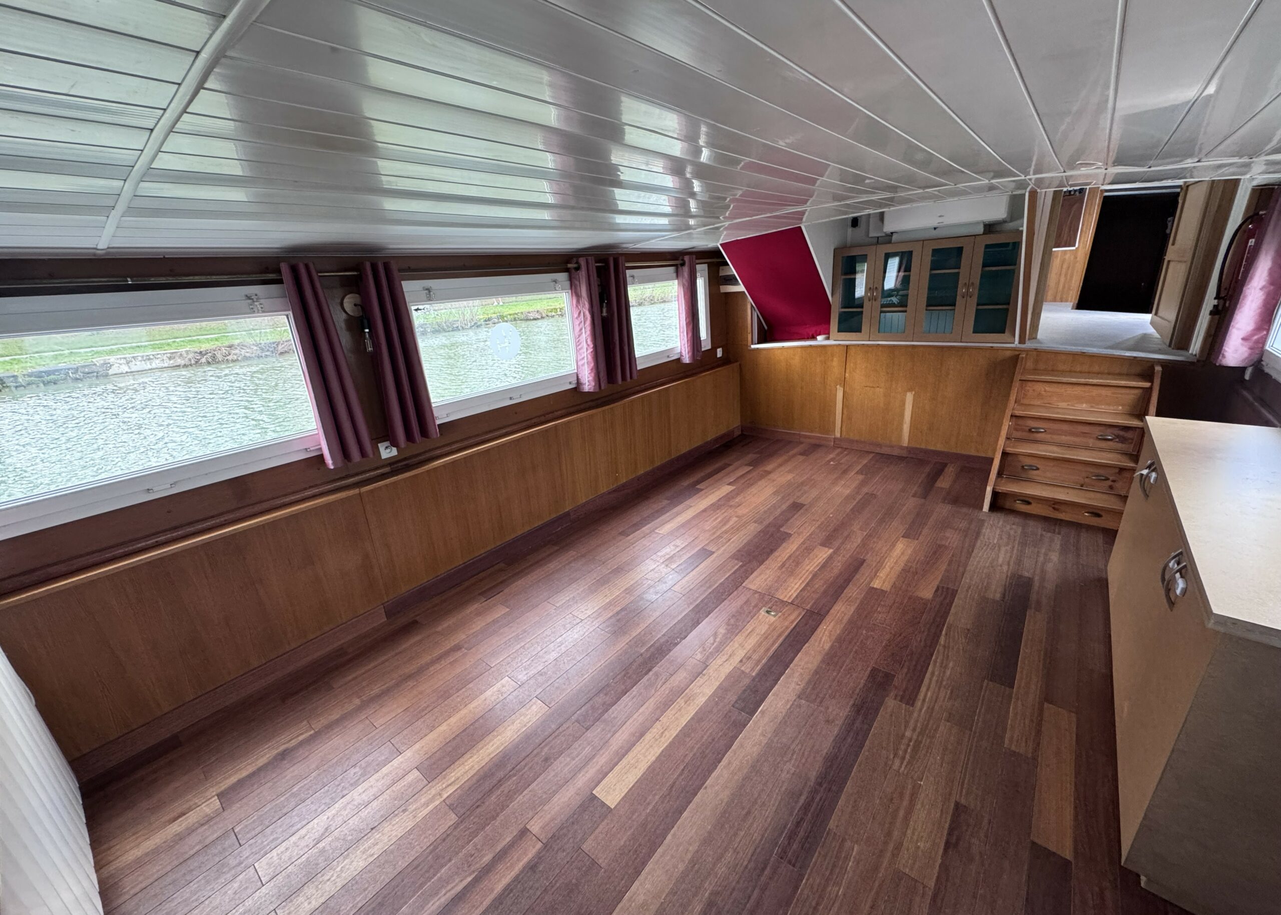 Entdecken Sie dieses etwas mehr als 20 Meter lange Hausboot mit großzügigen Räumlichkeiten und einer schönen Außenterrasse, ideal, um die schönen Tage auf dem Wasser zu genießen.