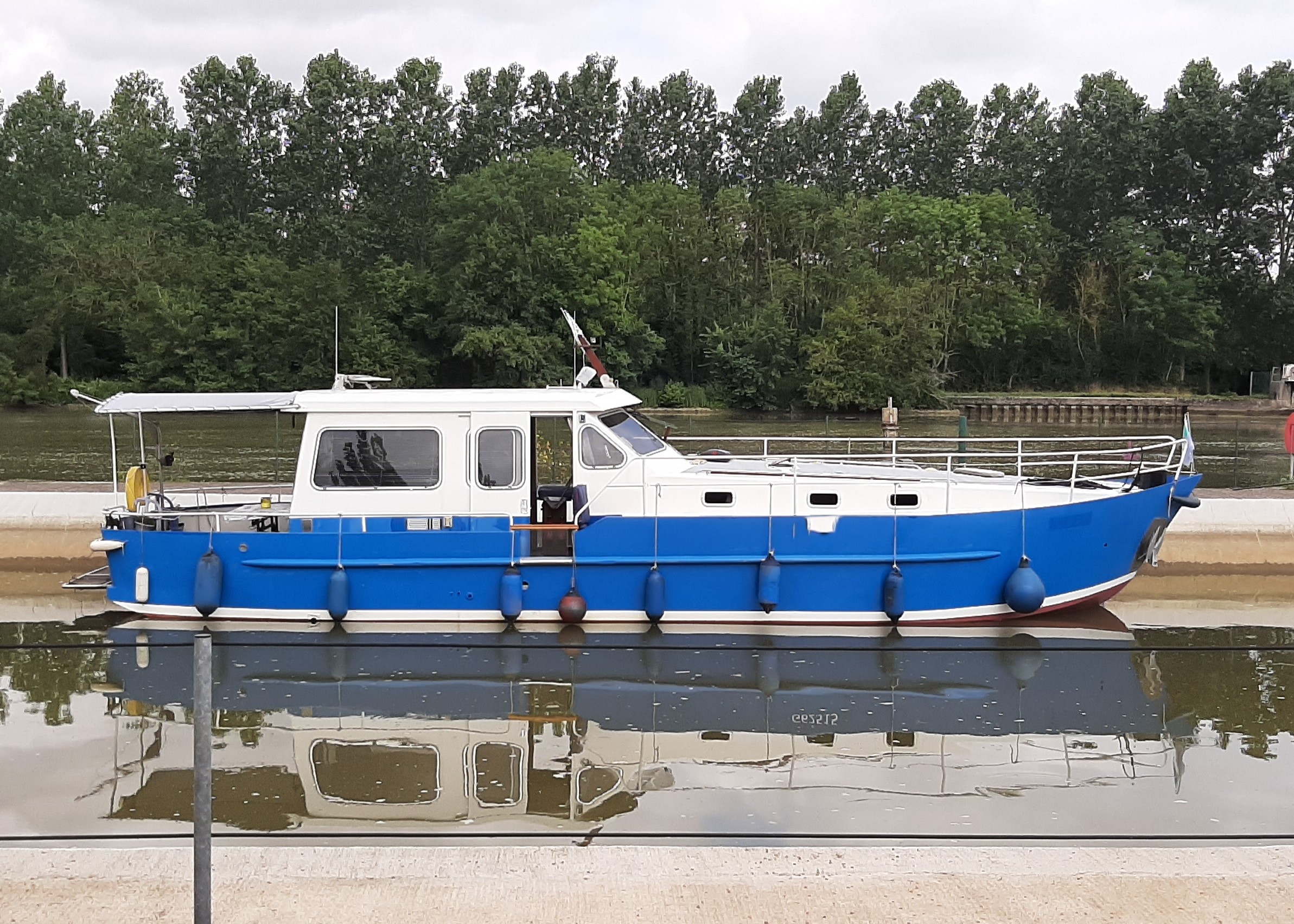Hausboot der Wachter-Werft in Belgien, Baujahr 1962, als Passagierschiff registriert. Dank seiner geringen Länge sehr leicht zu steuern, bietet es eine gemütliche und komfortable Unterkunft.