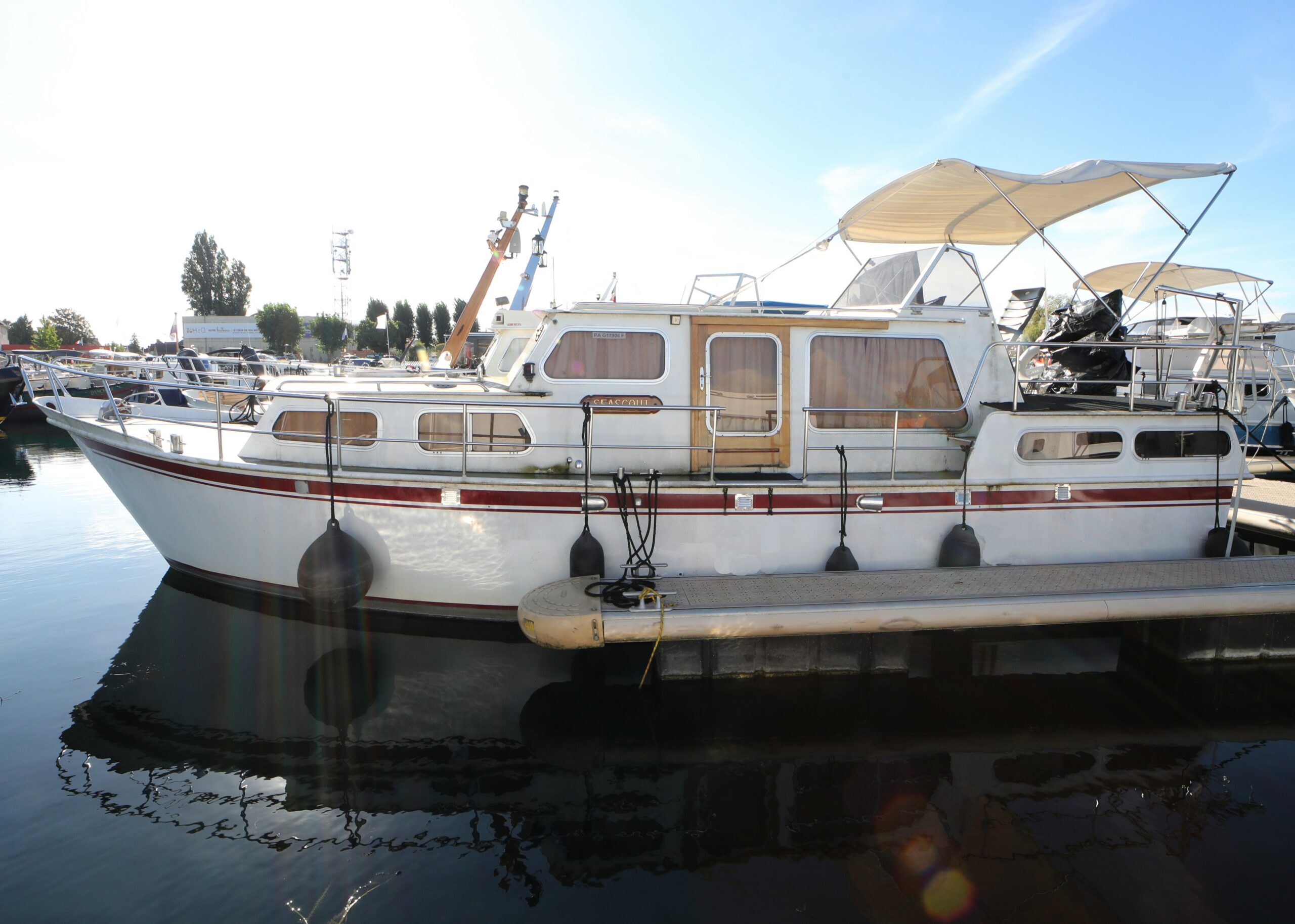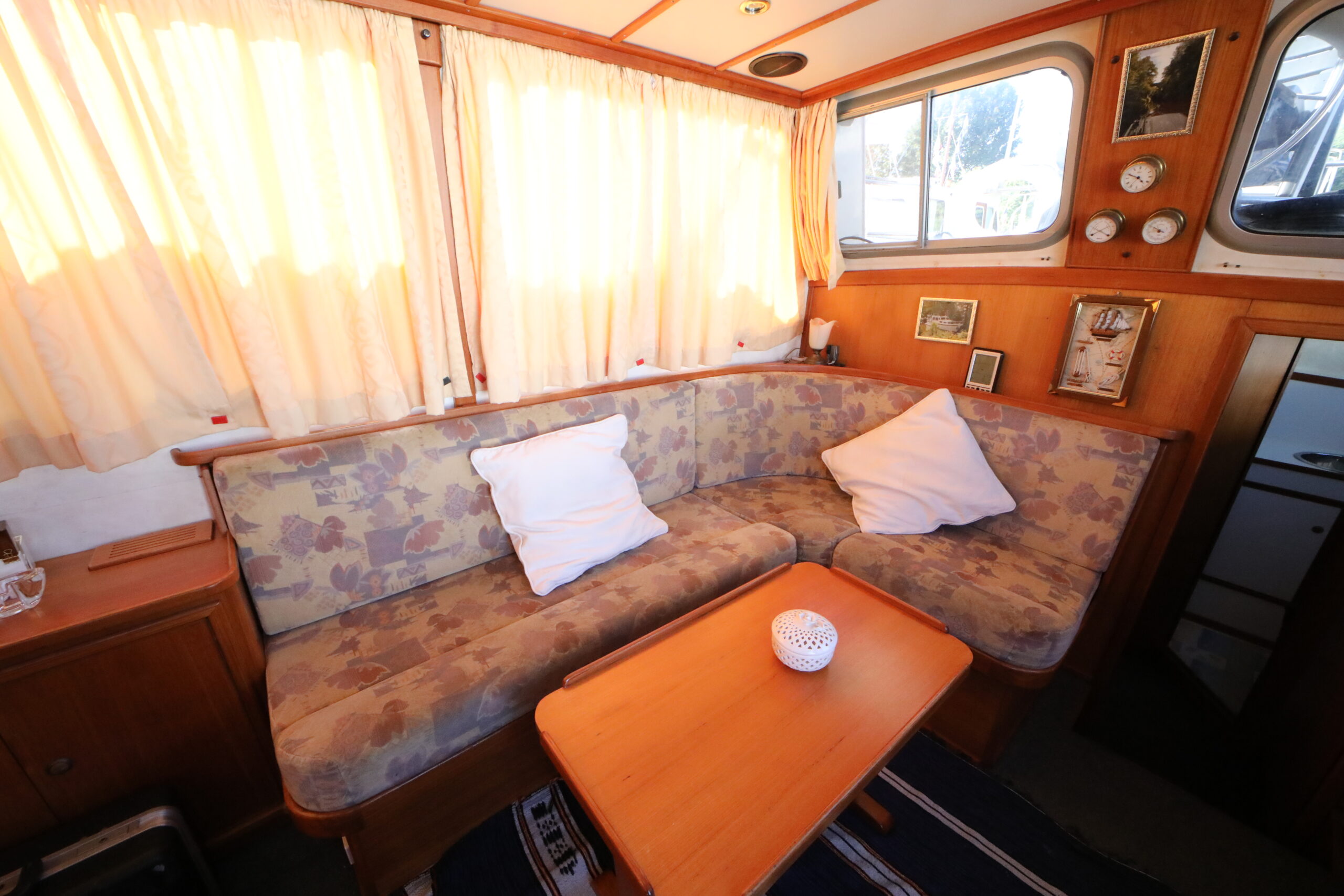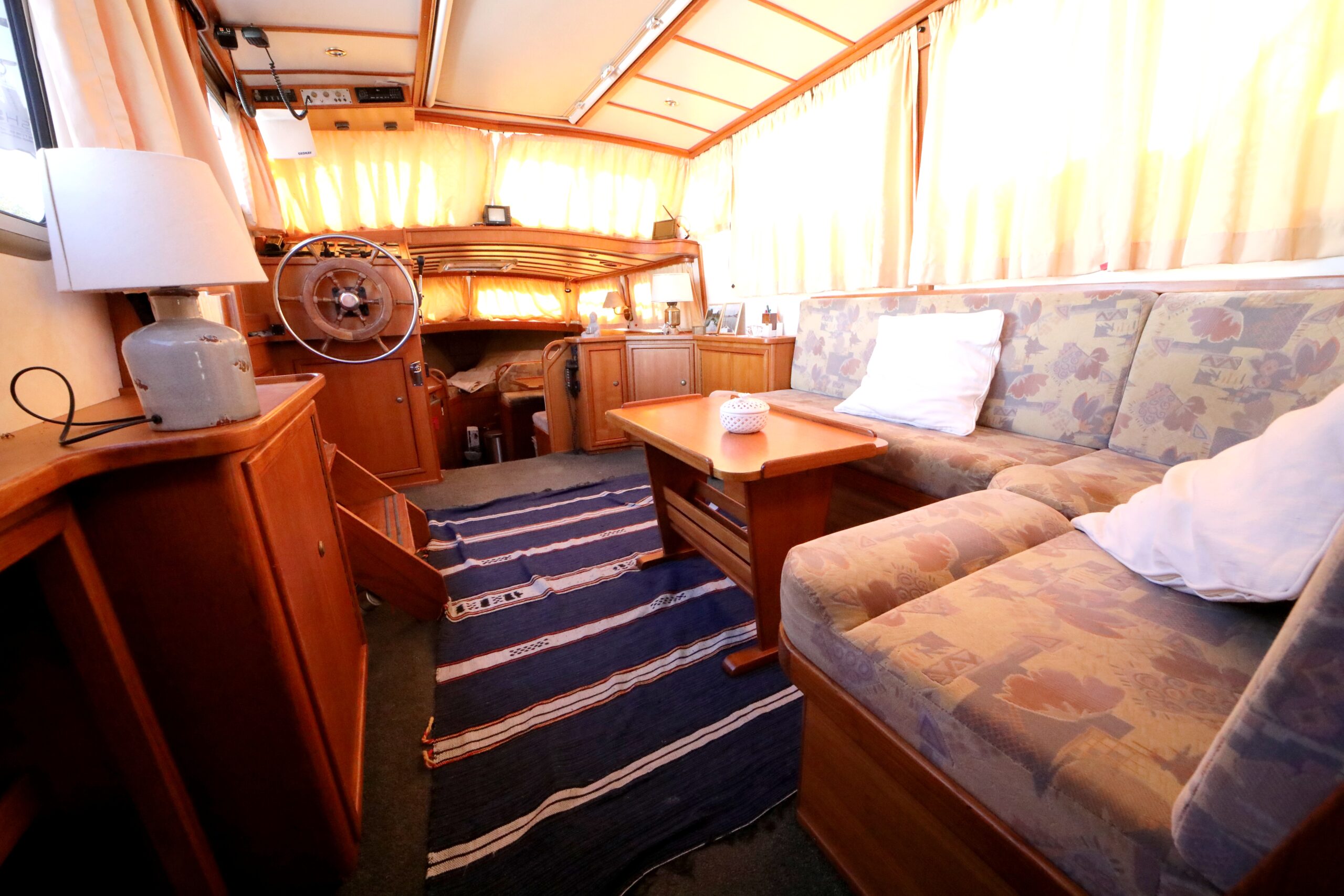 Hübscher niederländischer Star aus dem Jahr 1979, ideal für gemütliche Fahrten auf französischen und europäischen Kanälen. Die Terrasse, die sowohl während der Fahrt als auch vor Anker angenehm ist, bietet einen schönen Platz, um die Landschaft zu genießen. Der seitliche Zugang führt zu einem komfortablen und hellen Innenraum, bestehend aus einem einladenden Salon, einer Kabine mit Doppelbett und einem Badezimmer mit Dusche und WC. Die Küche ist sehr funktional, die Essecke ist gemütlich. Zwei bequeme Kojen befinden sich im Bug des Bootes.