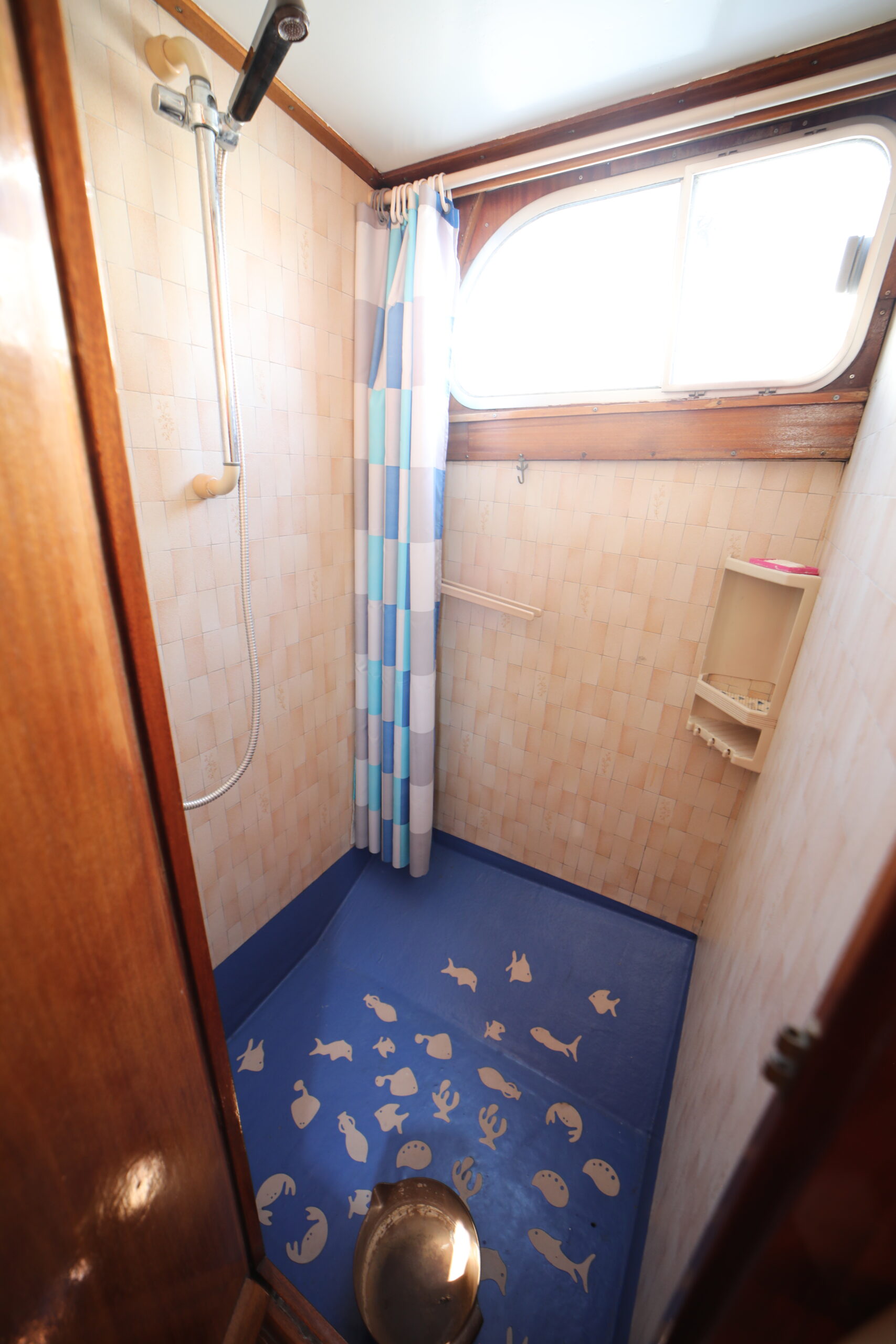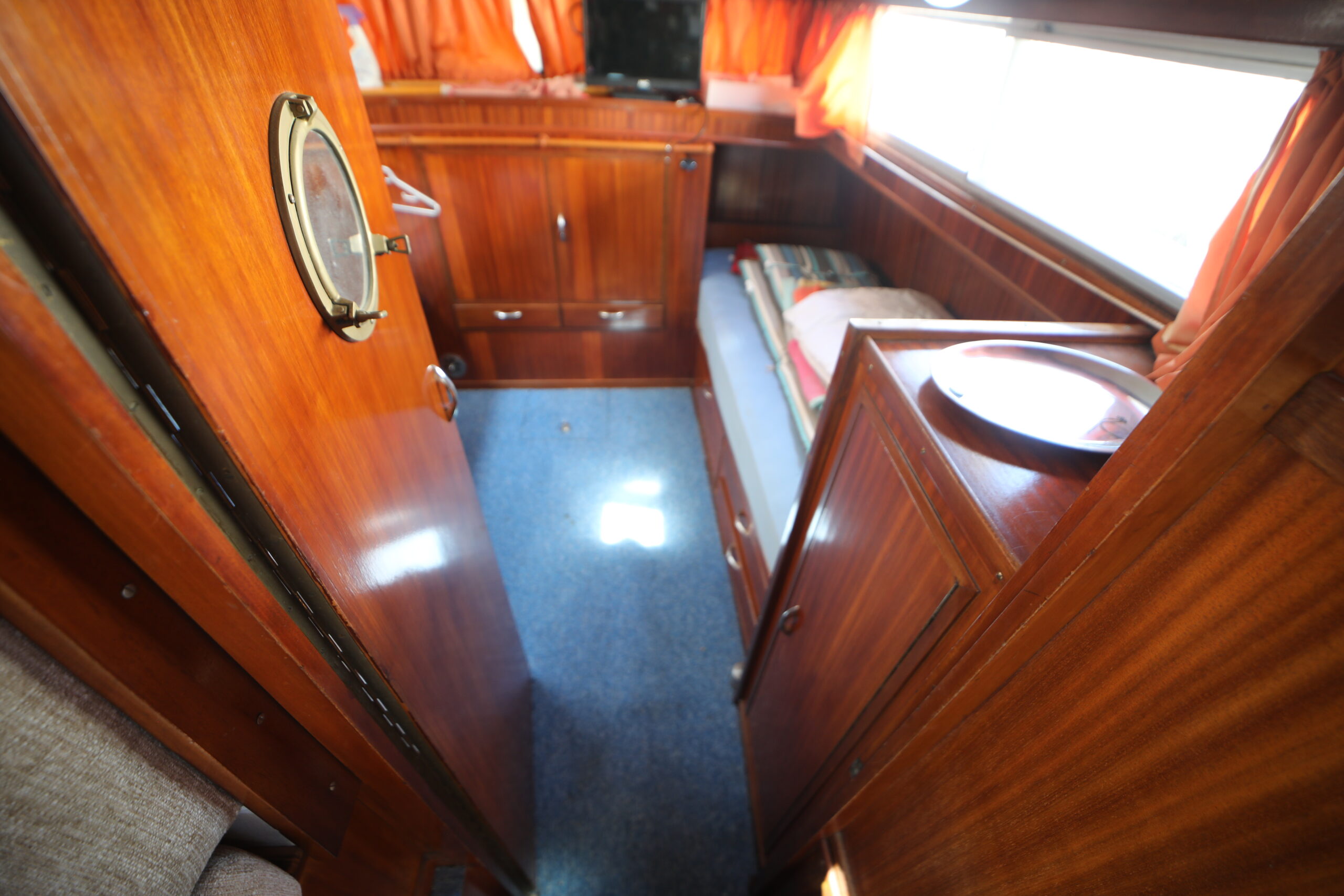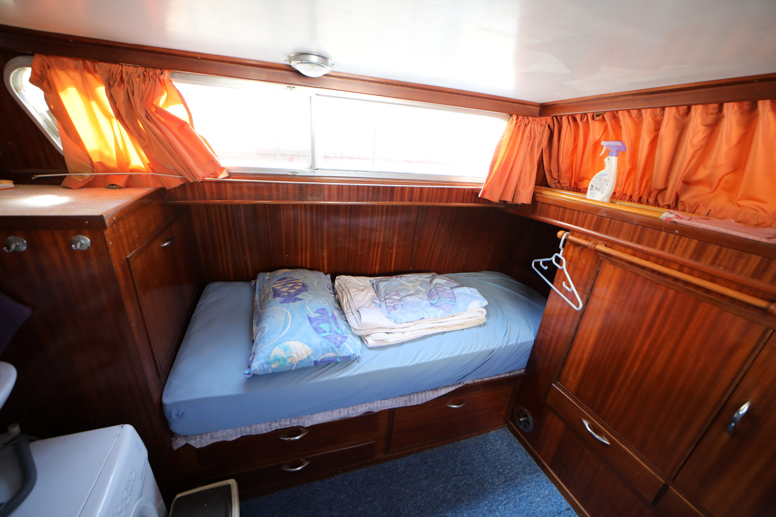 Im Inneren sorgt die hochwertige Holzverarbeitung für eine warme und authentische Atmosphäre. Die Yacht bietet 6 Schlafplätze: eine Achterkabine mit zwei Einzelbetten sowie ein zum Doppelbett umwandelbarer Salon. Ergänzt wird der Schlafbereich durch ein funktionales Badezimmer mit Waschbecken und WC.