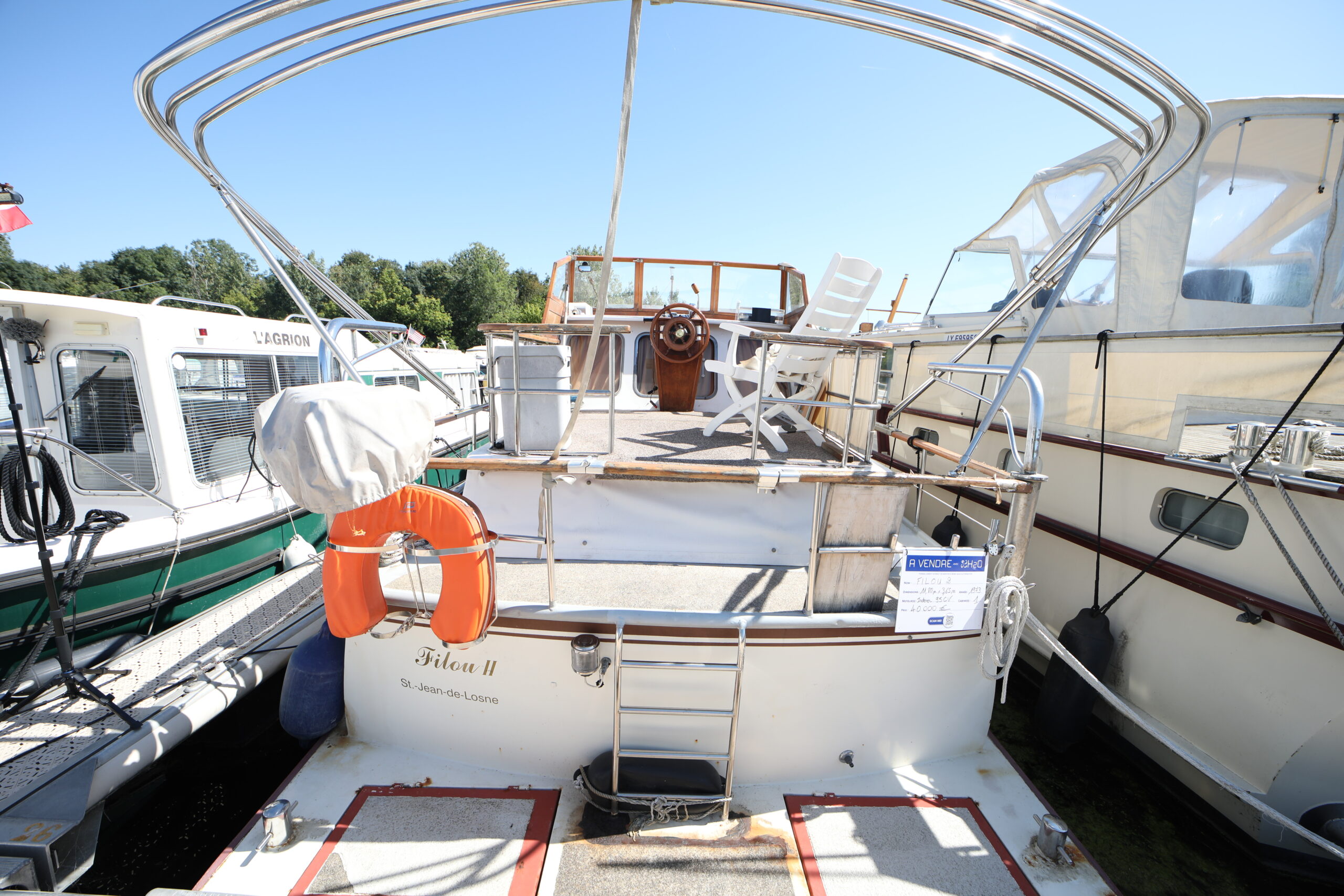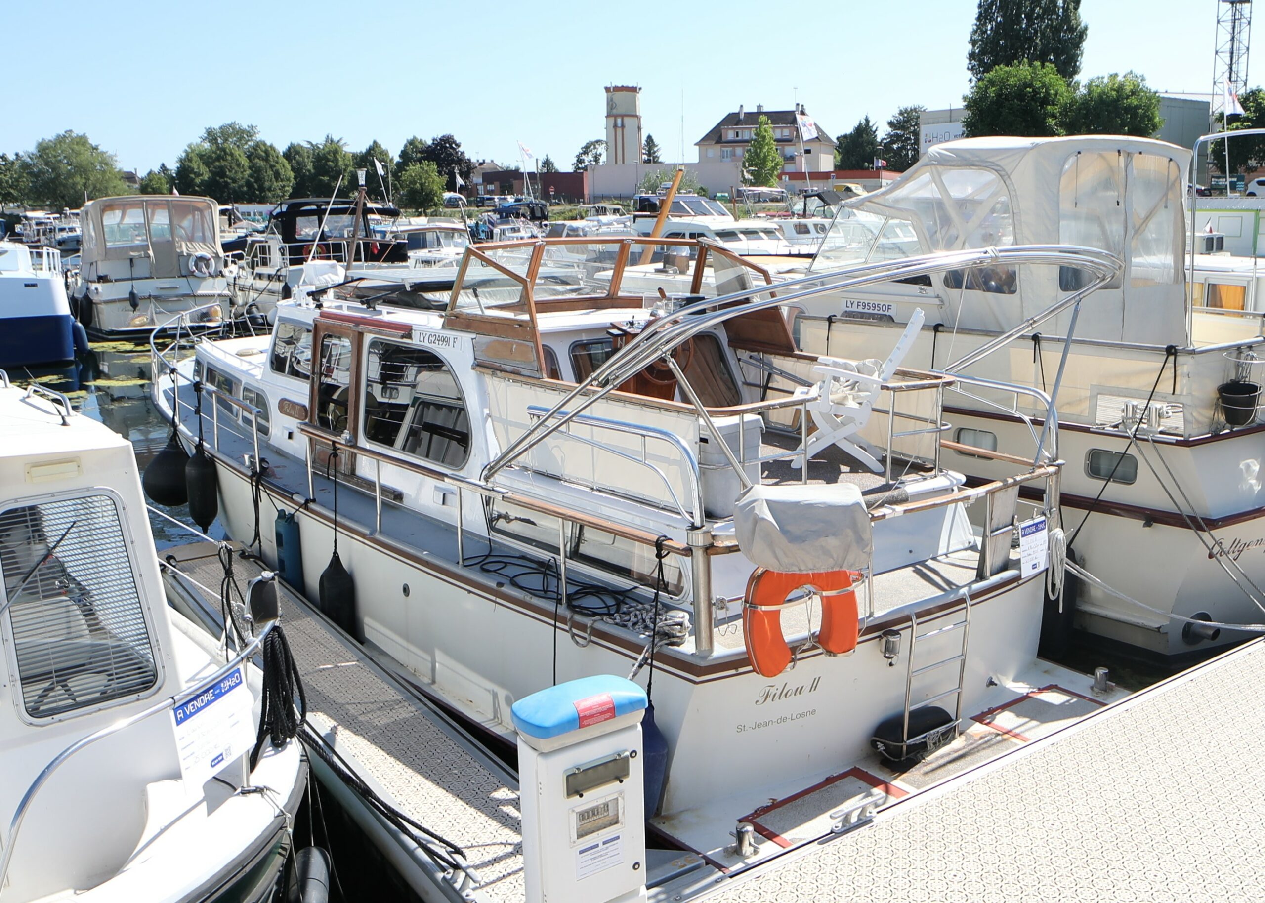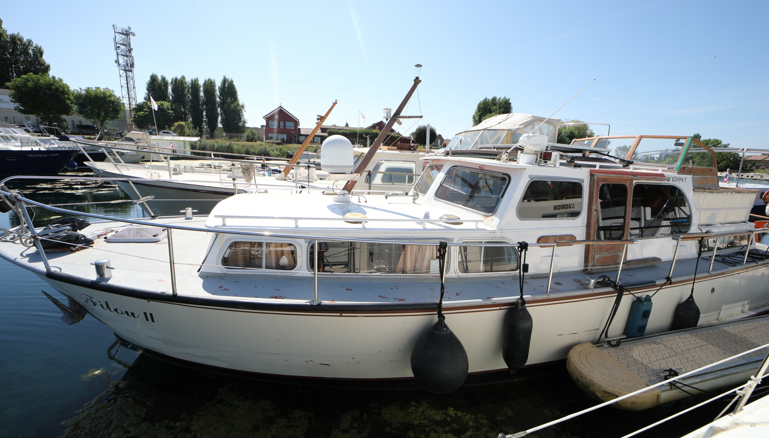 Entdecken Sie diese elegante holländische Motoryacht von De Vries, Baujahr 1973, mit einer Länge von 11,80 Metern und einer Breite von 3,65 Metern.