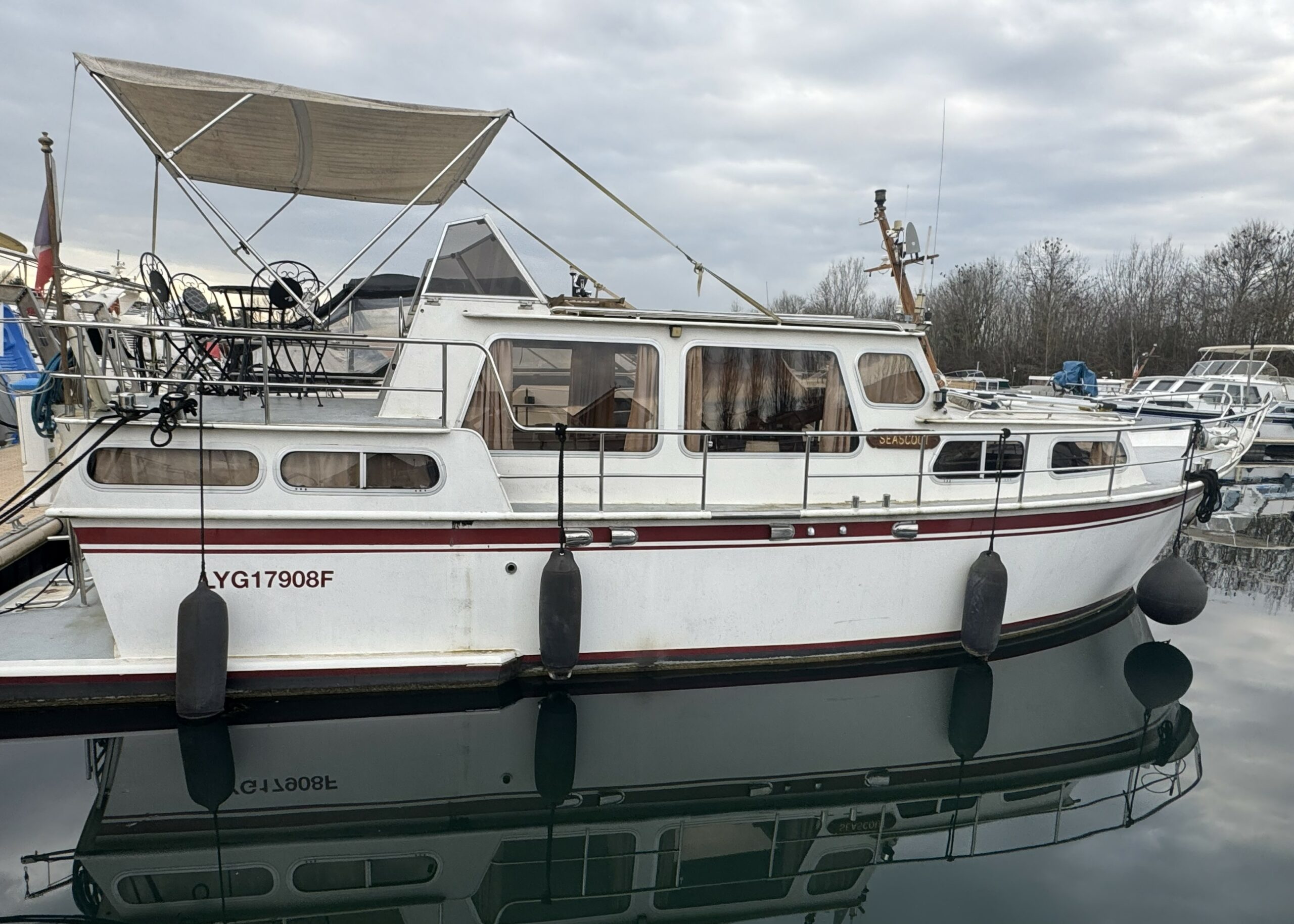 Schönes Hausboot mit einer robusten und verführerischen Linie, das 1937 gebaut wurde. Sie werden die große, halb überdachte Terrasse und die breiten Gangborde zu schätzen wissen, die es Ihnen ermöglichen, sich leicht auf dem Boot zu bewegen. Der Innenraum ist geräumig und komfortabel und bietet ein großes Steuerhaus mit Sitzbank, eine gut ausgestattete Küche, ein Wohnzimmer mit Schlafsofa, ein Badezimmer und eine Kabine mit Doppelbett.