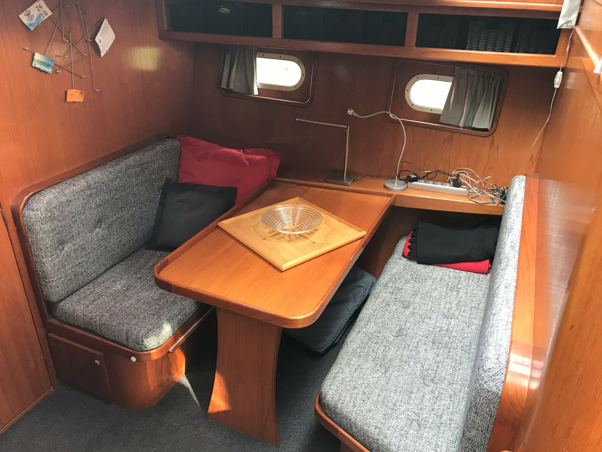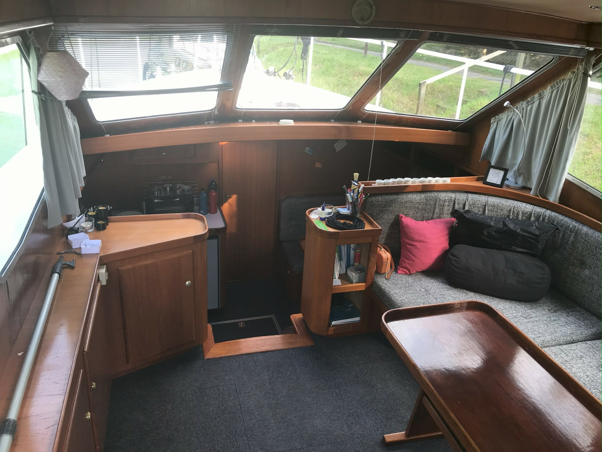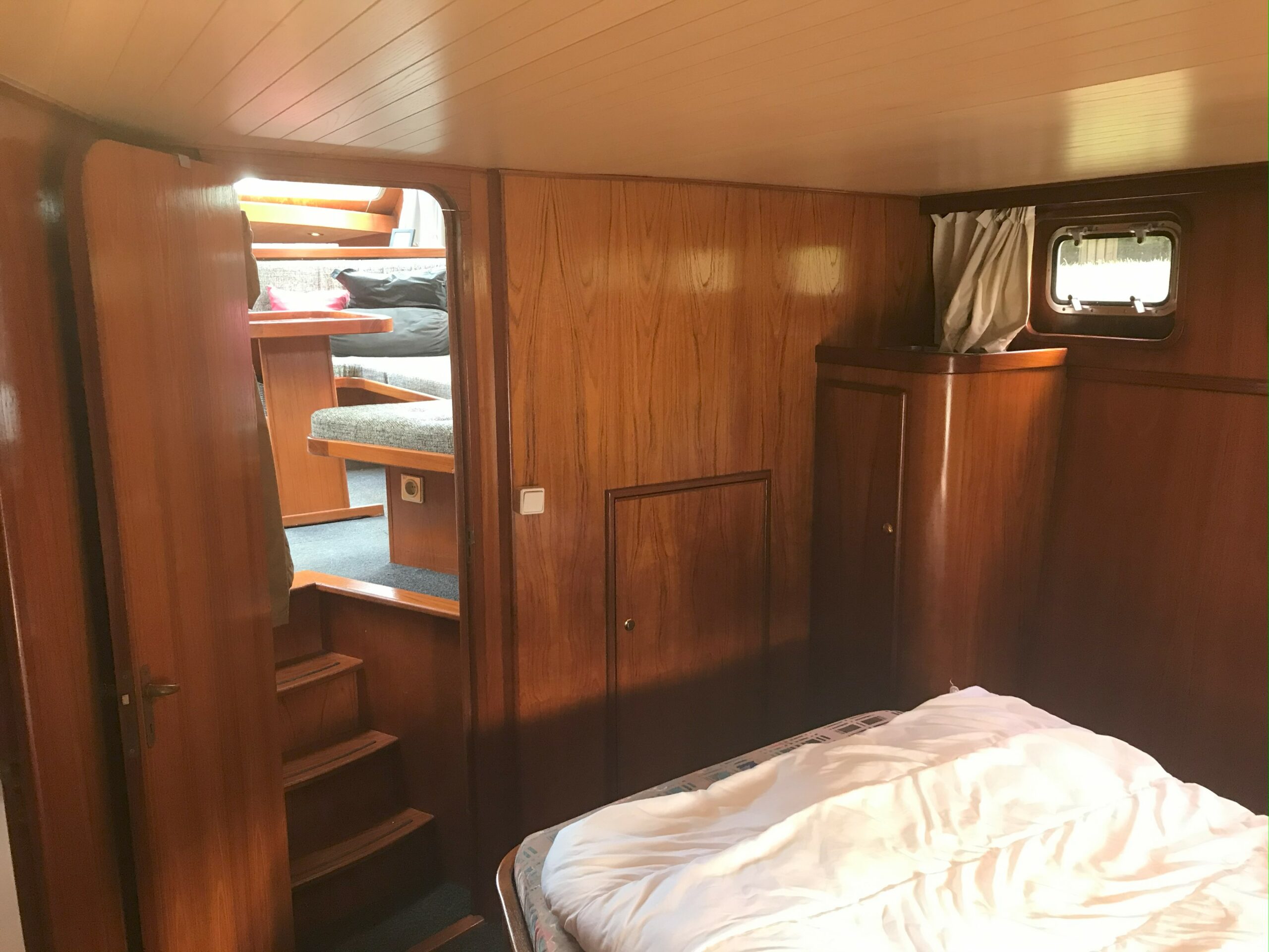 Der helle und gemütliche Innenraum besteht aus einem großen Salon, einer voll ausgestatteten Küche, zwei komfortablen Kabinen, einer Dusche und zwei Toiletten. Der Steuerstand ist geräumig und bietet sowohl auf See als auch im Hafen eine hervorragende Sicht und einen angenehmen Steuerplatz.