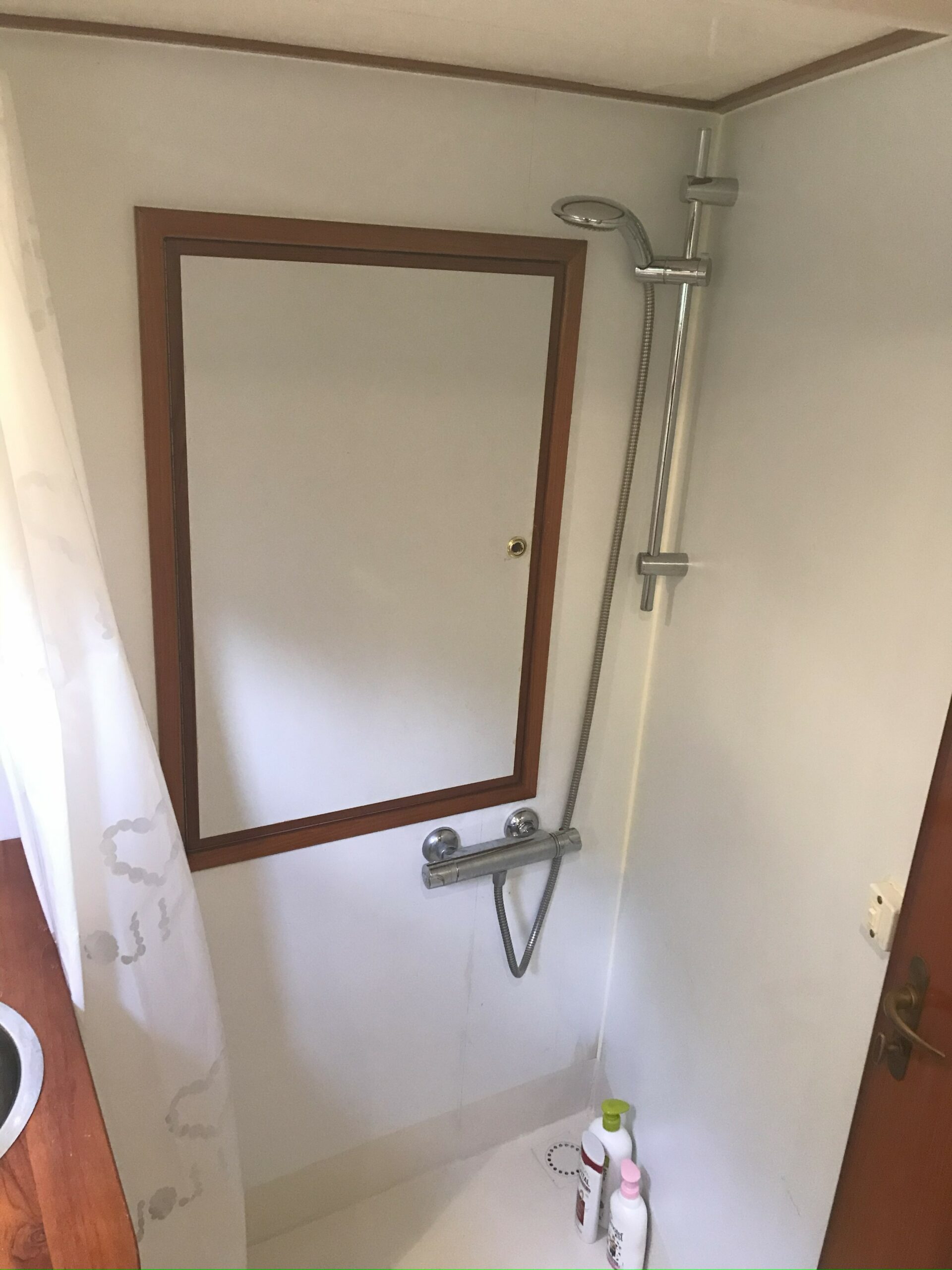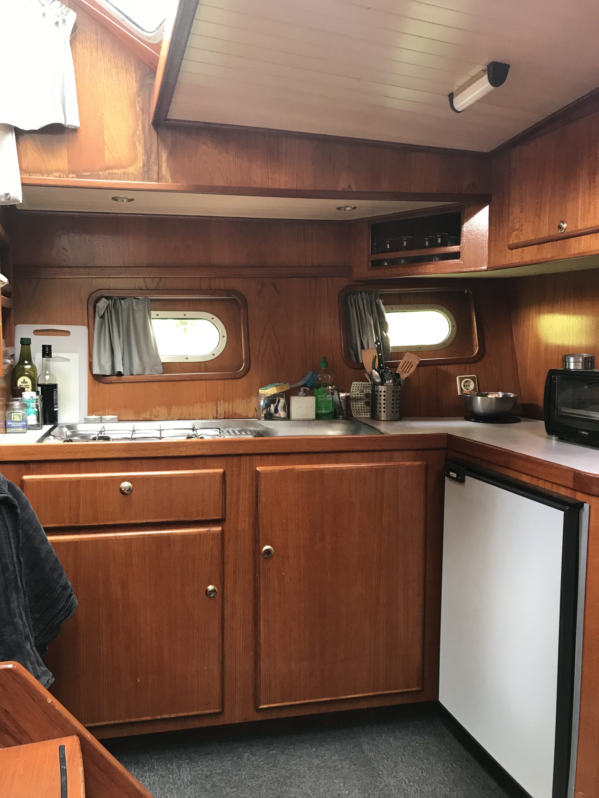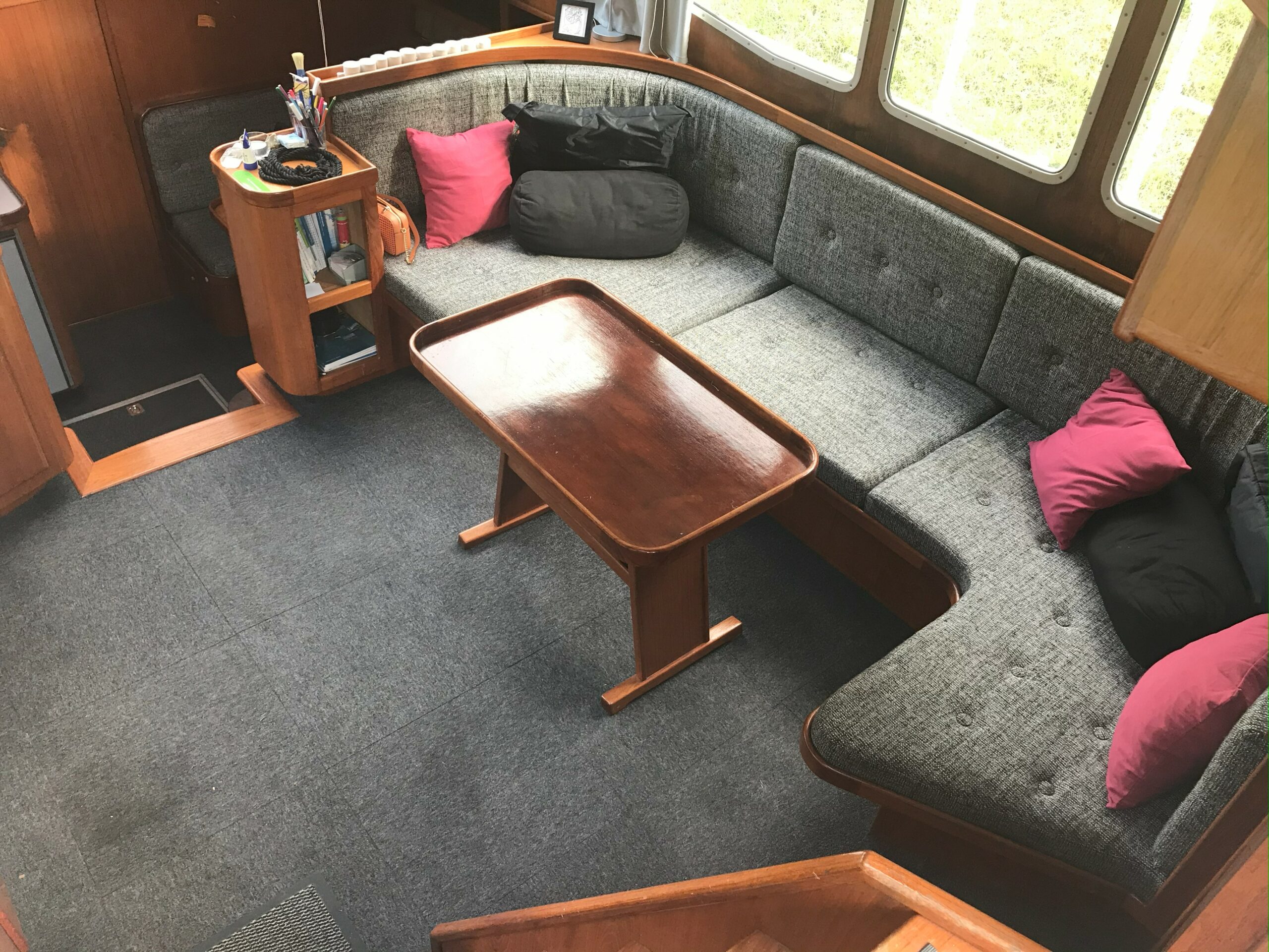 Der helle und gemütliche Innenraum besteht aus einem großen Salon, einer voll ausgestatteten Küche, zwei komfortablen Kabinen, einer Dusche und zwei Toiletten. Der Steuerstand ist geräumig und bietet sowohl auf See als auch im Hafen eine hervorragende Sicht und einen angenehmen Steuerplatz.