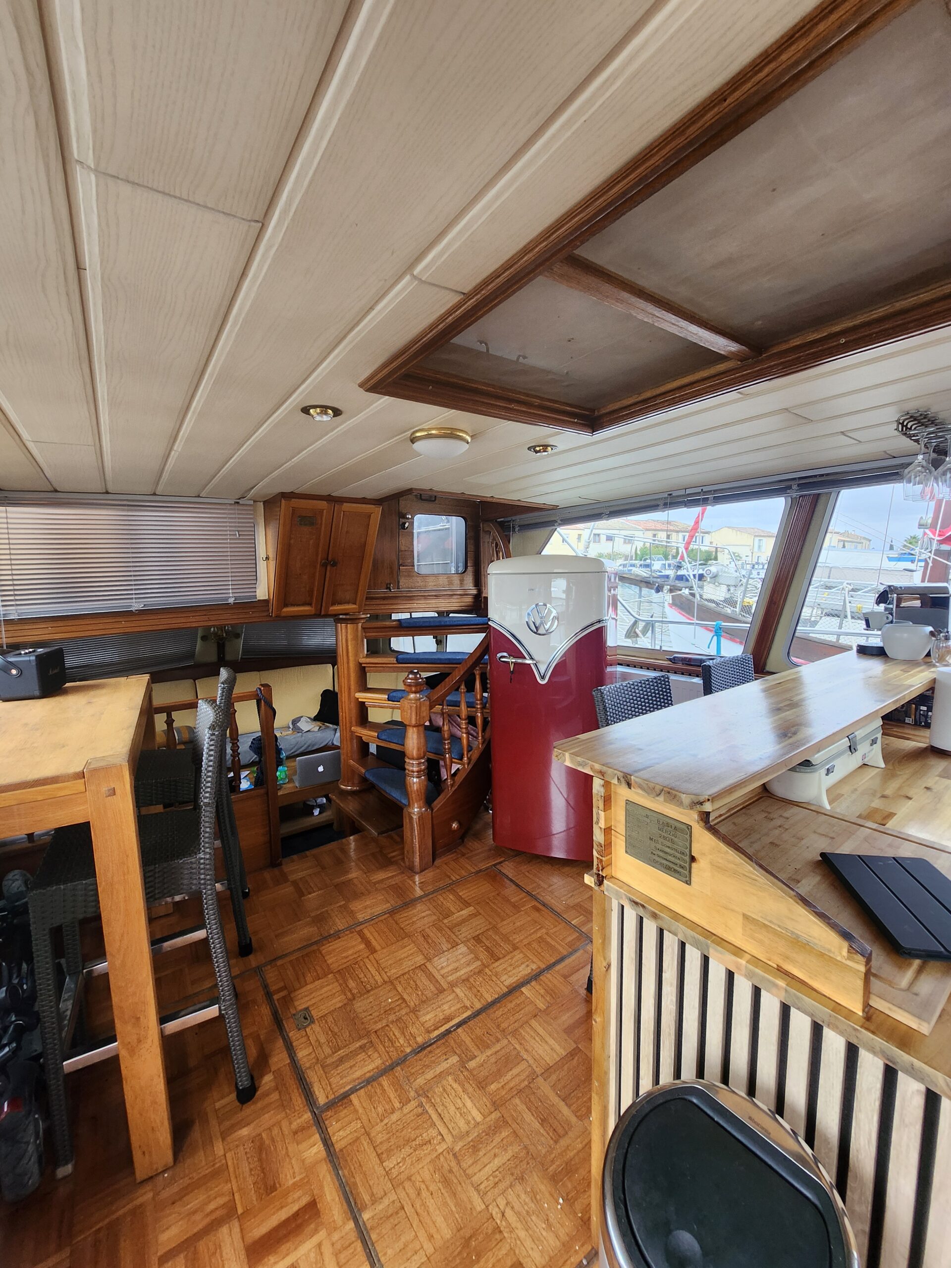 Der Innenraum überrascht durch seine besonders großzügige, helle und gemütliche Gestaltung. Der geräumige und einladende Salon lädt zum gemütlichen Beisammensein ein, während sich die funktionale Küche perfekt in diesen Wohnbereich einfügt und echte Lebensbedingungen an Bord bietet. Die Einrichtung wurde so konzipiert, dass das Volumen optimiert und der Alltag erleichtert wird, was das angenehme Gefühl eines schwimmenden Zuhauses noch verstärkt.