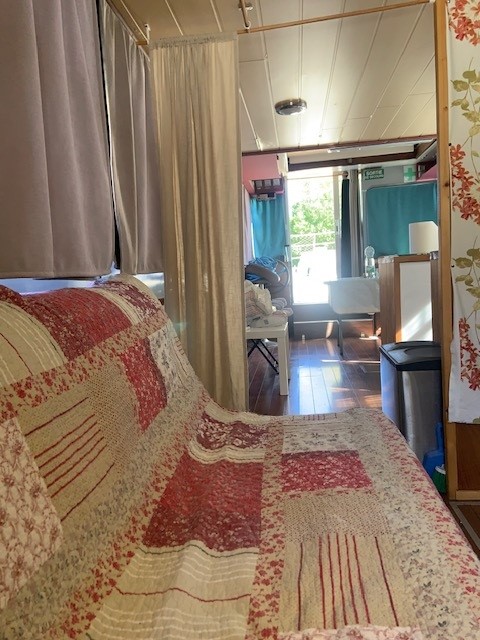 Zu dieser Ausstattung kommt eine Wohnraumgestaltung hinzu: ein Schlafzimmer, eine Dusche und ein separates WC, wodurch das Boot in ein echtes schwimmendes Studio verwandelt werden kann.
