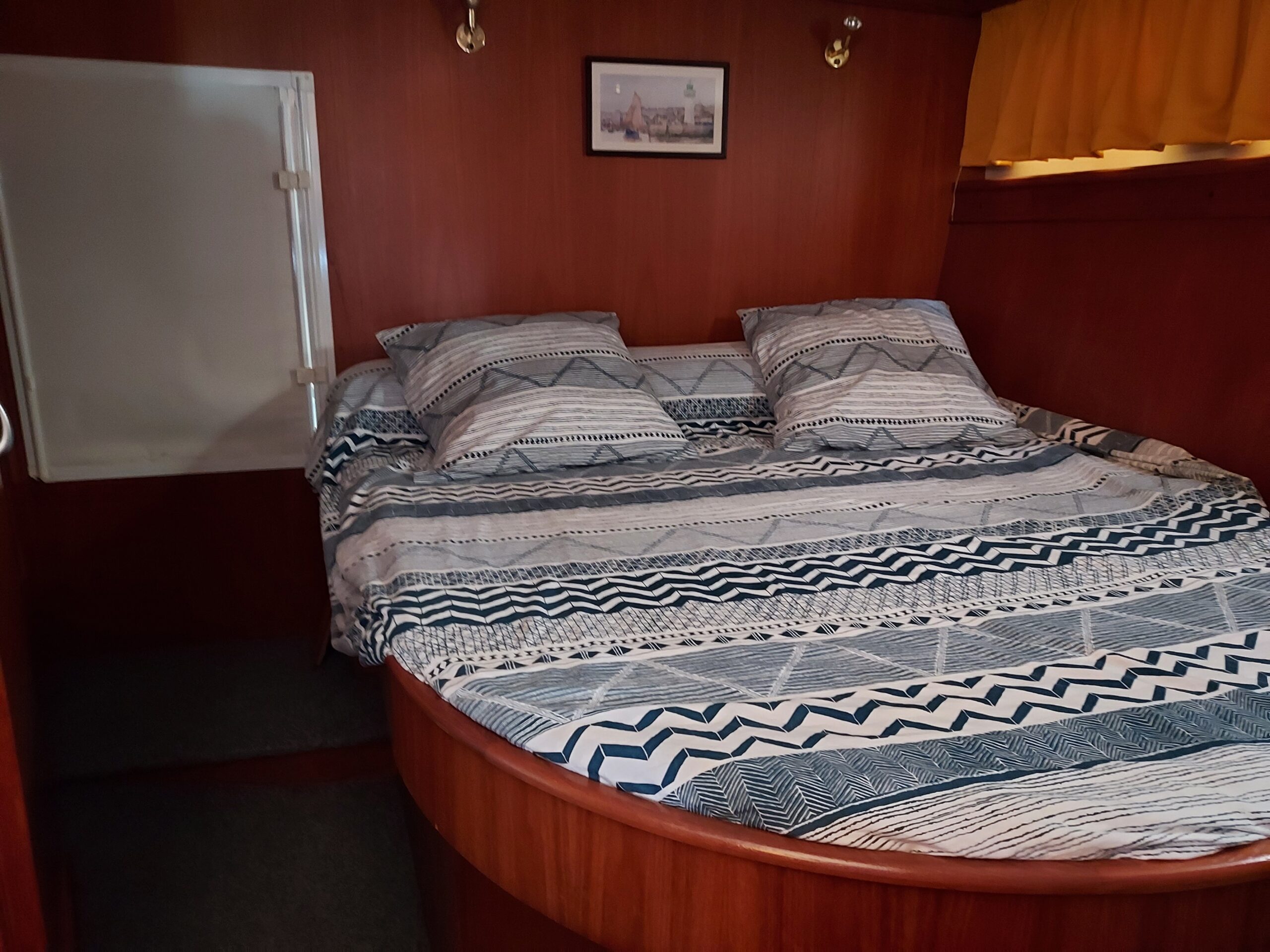Mit seinen zwei Kabinen bietet das Boot bis zu 6 Schlafplätze dank zwei Einzelbetten und zwei Doppelbetten. Außerdem ermöglichen die breiten Seitendecks und die komfortable Badeplattform eine leichte Bewegung an Bord und sorgen für entspannte Momente.