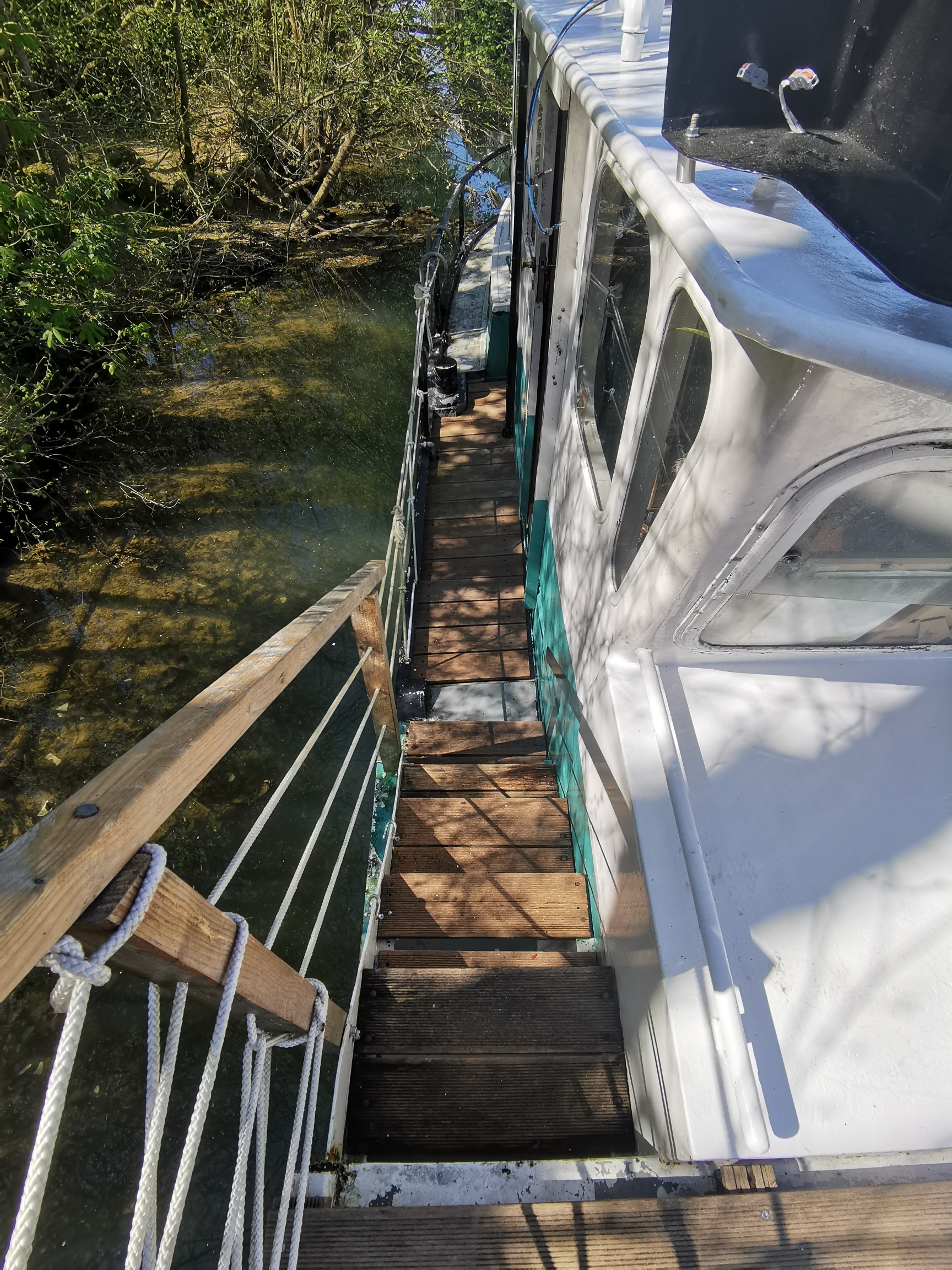 Darüber hinaus verfügt diese Péniche über eine große Terrasse, perfekt, um sonnige Tage zu genießen und gesellige Stunden mit Familie oder Freunden zu verbringen. Im Inneren finden Sie ein helles Steuerhaus, eine ausgestattete Küche mit Gasherd und Gasofen sowie einen 220V Kühlschrank. Das geräumige Wohnzimmer lädt zum Entspannen ein, während die Kabine mit zwei Doppelbetten Platz für bis zu 4 Personen bietet.