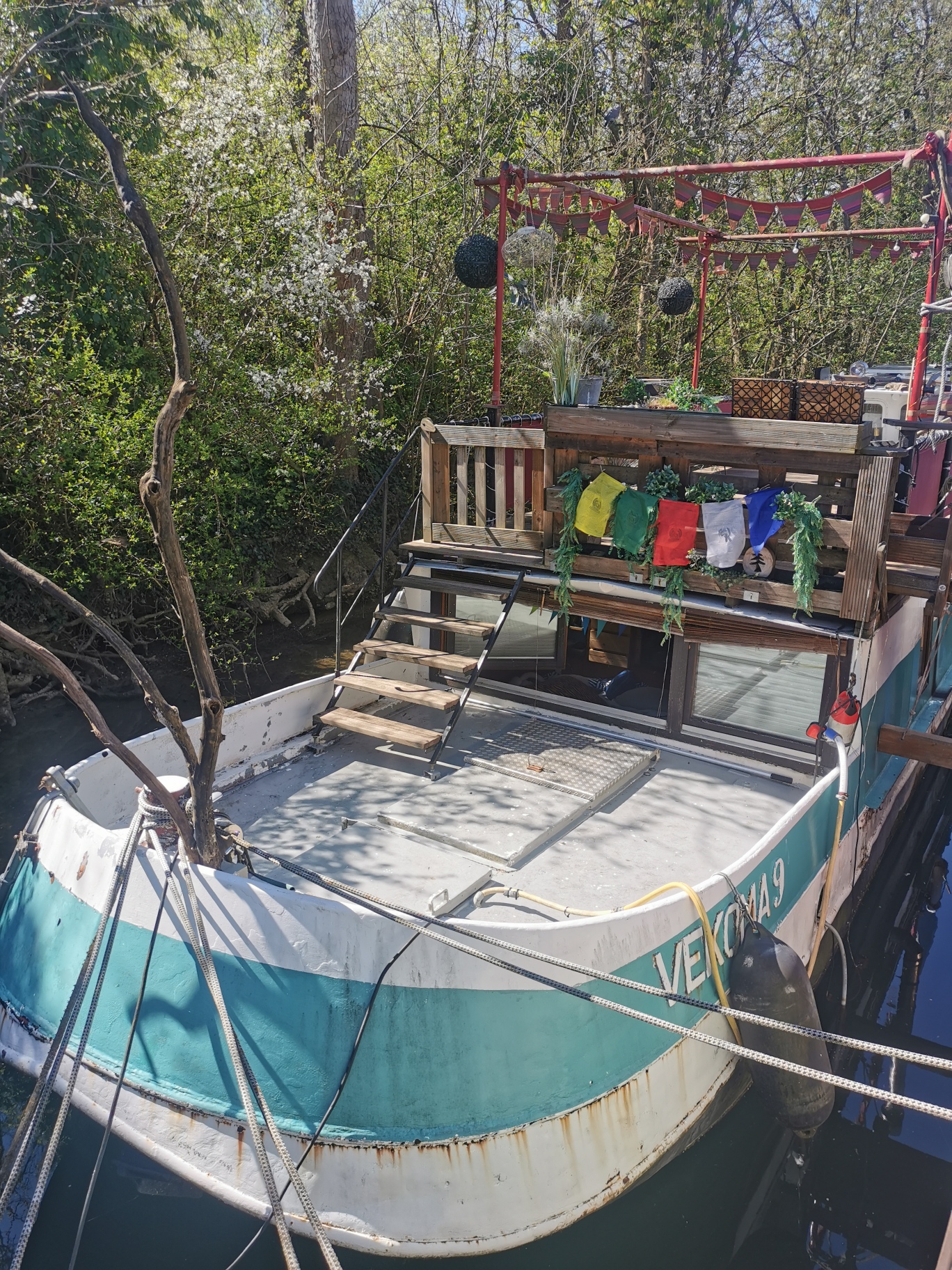 Erleben Sie das Flussleben in vollen Zügen mit dieser einzigartigen Eljk Overschi Péniche, die historischen Charme mit modernem Komfort verbindet.