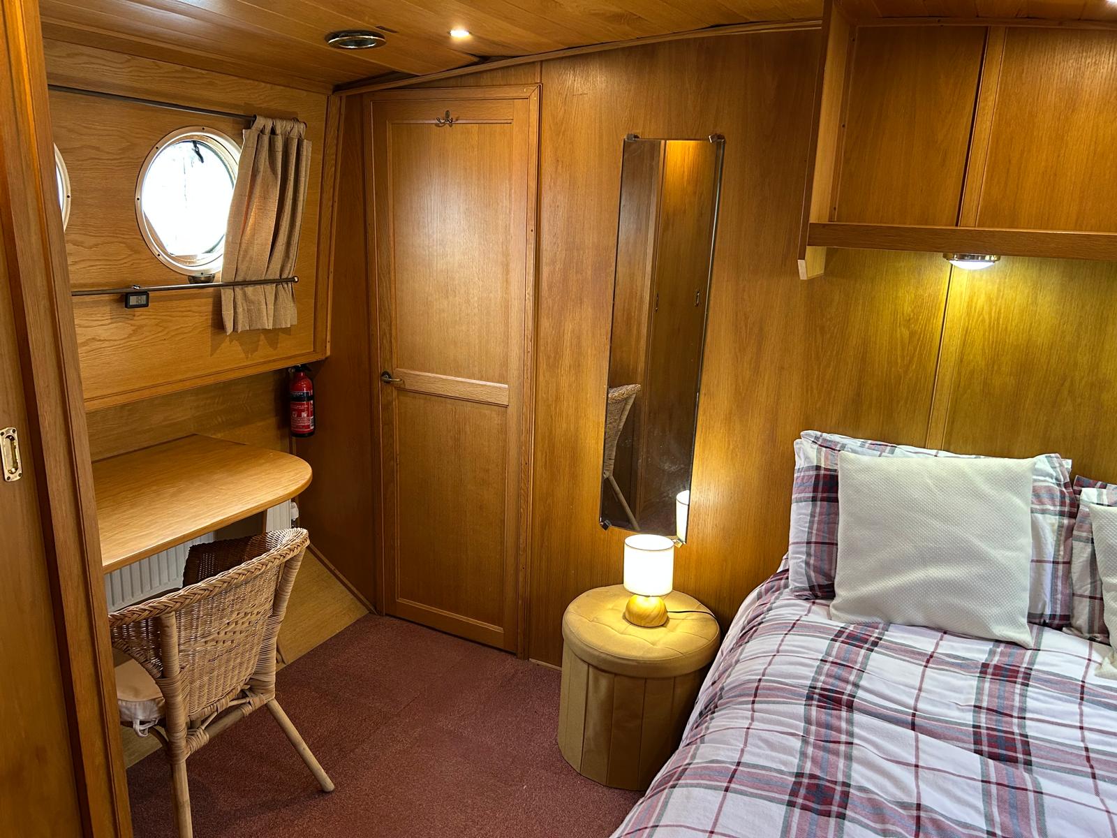 Dieses Peter Nicholls Hausboot vereint eine robuste Bauweise mit außergewöhnlichem Komfort und eignet sich somit ideal für die Binnenschifffahrt sowie für lange Kreuzfahrten. Als echtes Vorzeigemodell der Peter-Nicholls-Werft überzeugt es vor allem durch seine Stabilität, seine einfache Manövrierbarkeit und eine besonders durchdachte Raumaufteilung für das Leben an Bord.