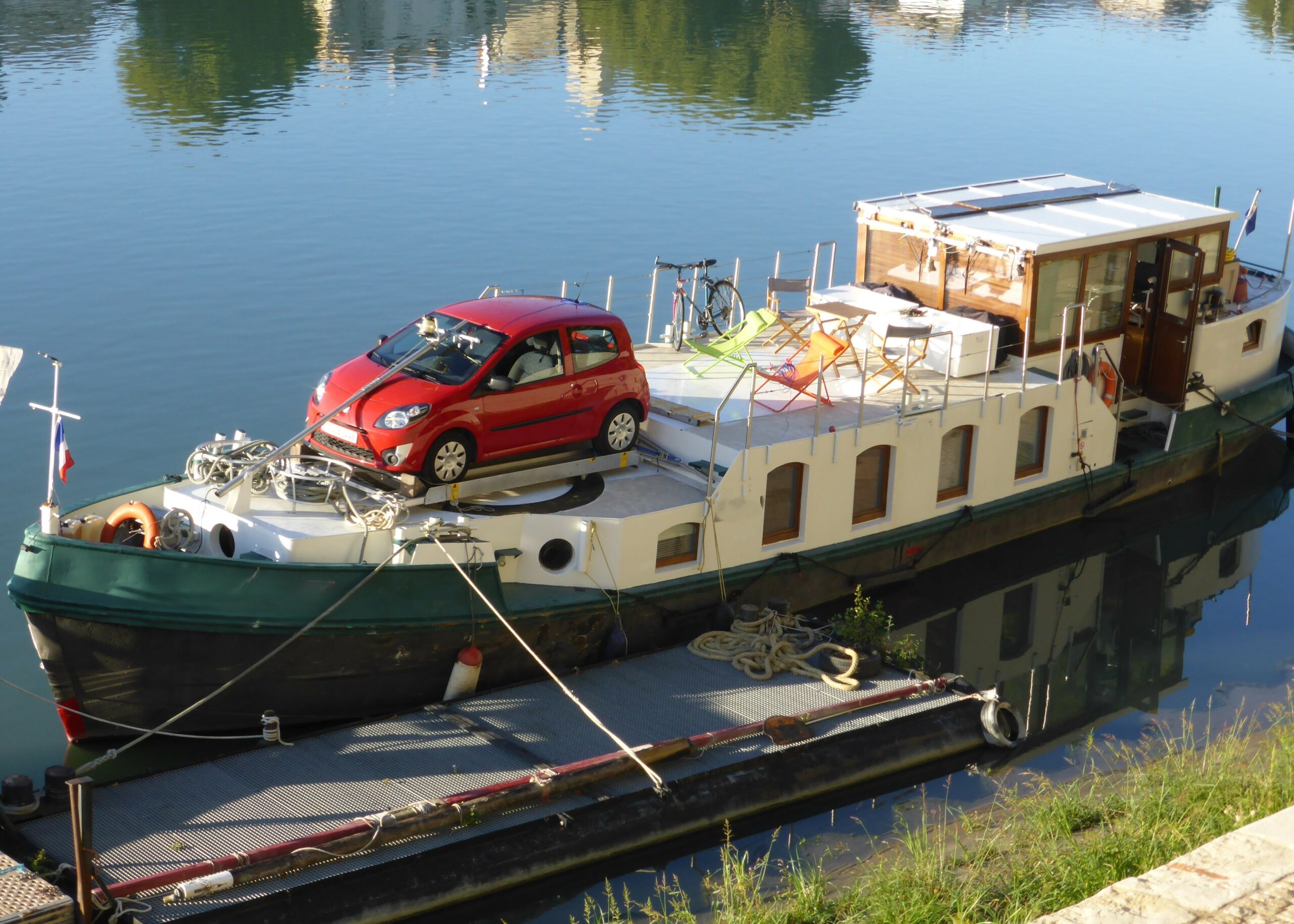 Niederländischer Lastkahn aus dem Jahr 1913. Einst für den Gütertransport genutzt, ist sie heute gut ausgestattet und perfekt für ein Leben auf dem Wasser geeignet. Ihr europäisches Zertifikat ist noch bis 2031 gültig. Das Deck und die Aufbauten müssen jedoch gestrichen werden. Das Boot verfügt über ein schönes Steuerhaus, ein helles Wohnzimmer mit Sitzecke, Essbereich und Küche, ein Badezimmer, ein zweites Wohnzimmer, das in eine Kabine umgewandelt werden kann, und ein Schlafzimmer mit Doppelbett.