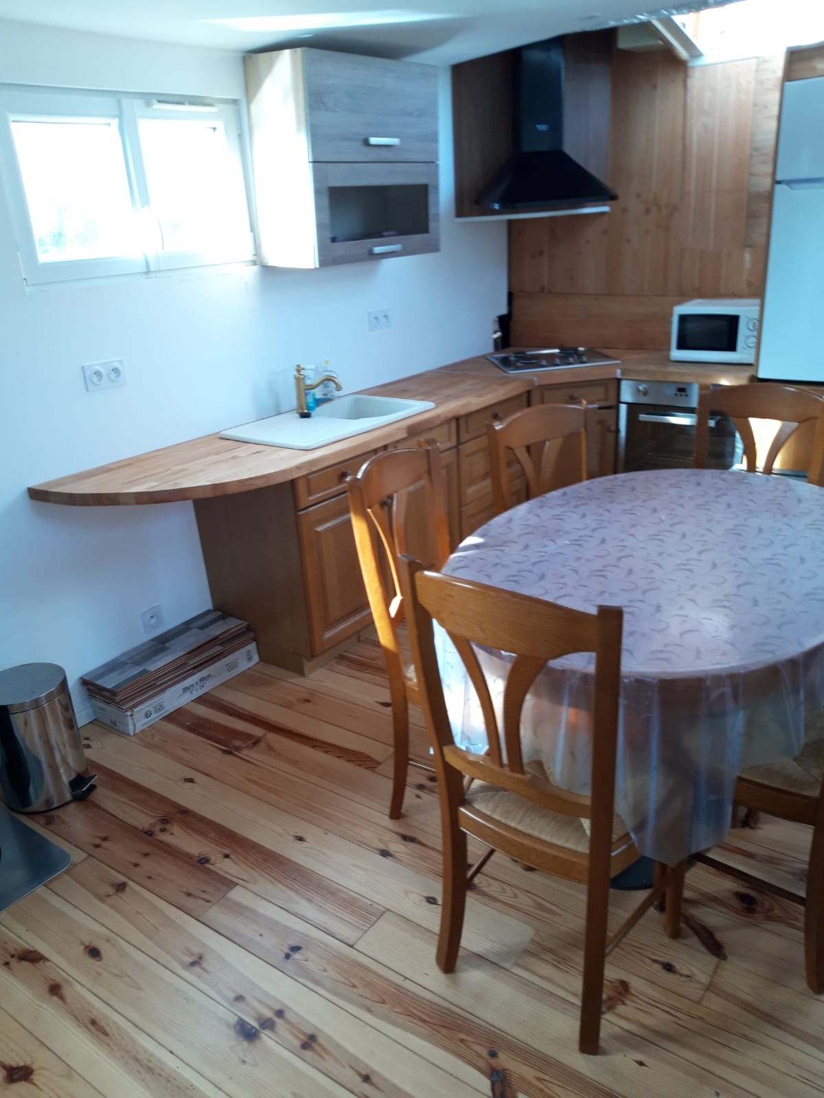Der helle und lichtdurchflutete Innenraum bietet einen schönen Wohnbereich mit einem gemütlichen Salon und einer voll ausgestatteten Küche, sodass man einen Komfort genießen kann, der dem eines Hauses in nichts nachsteht. Die Fenster und Türen sorgen für ein angenehmes Gefühl von Weite und Wohlbefinden im Alltag.