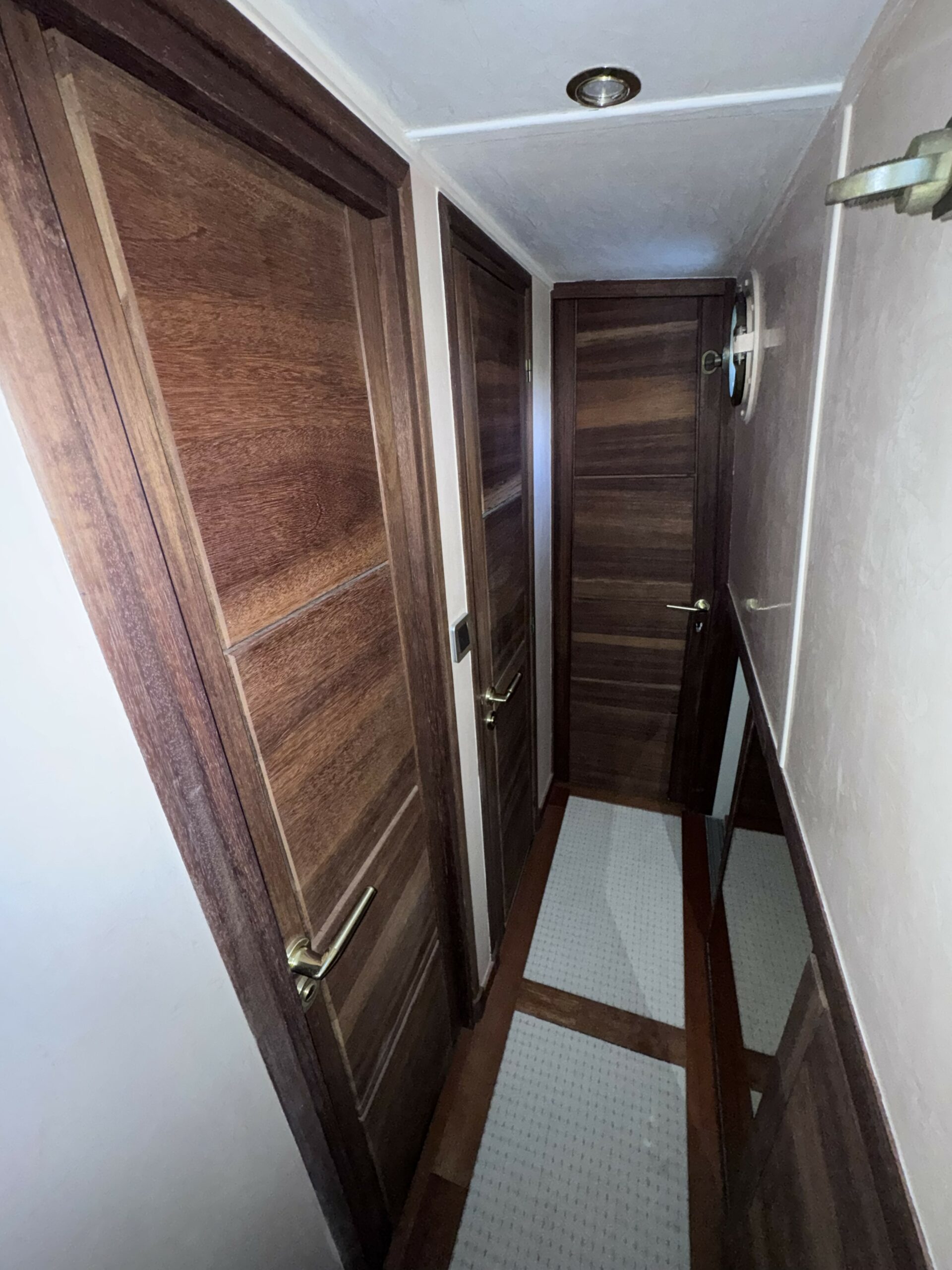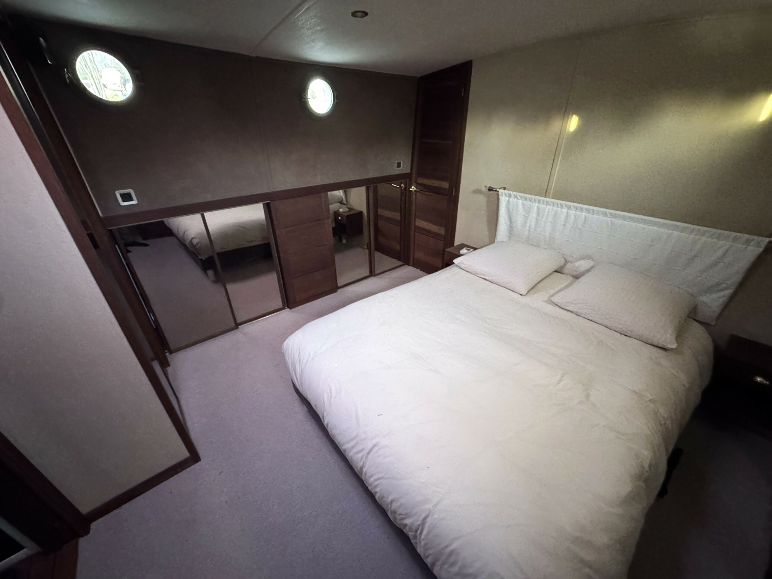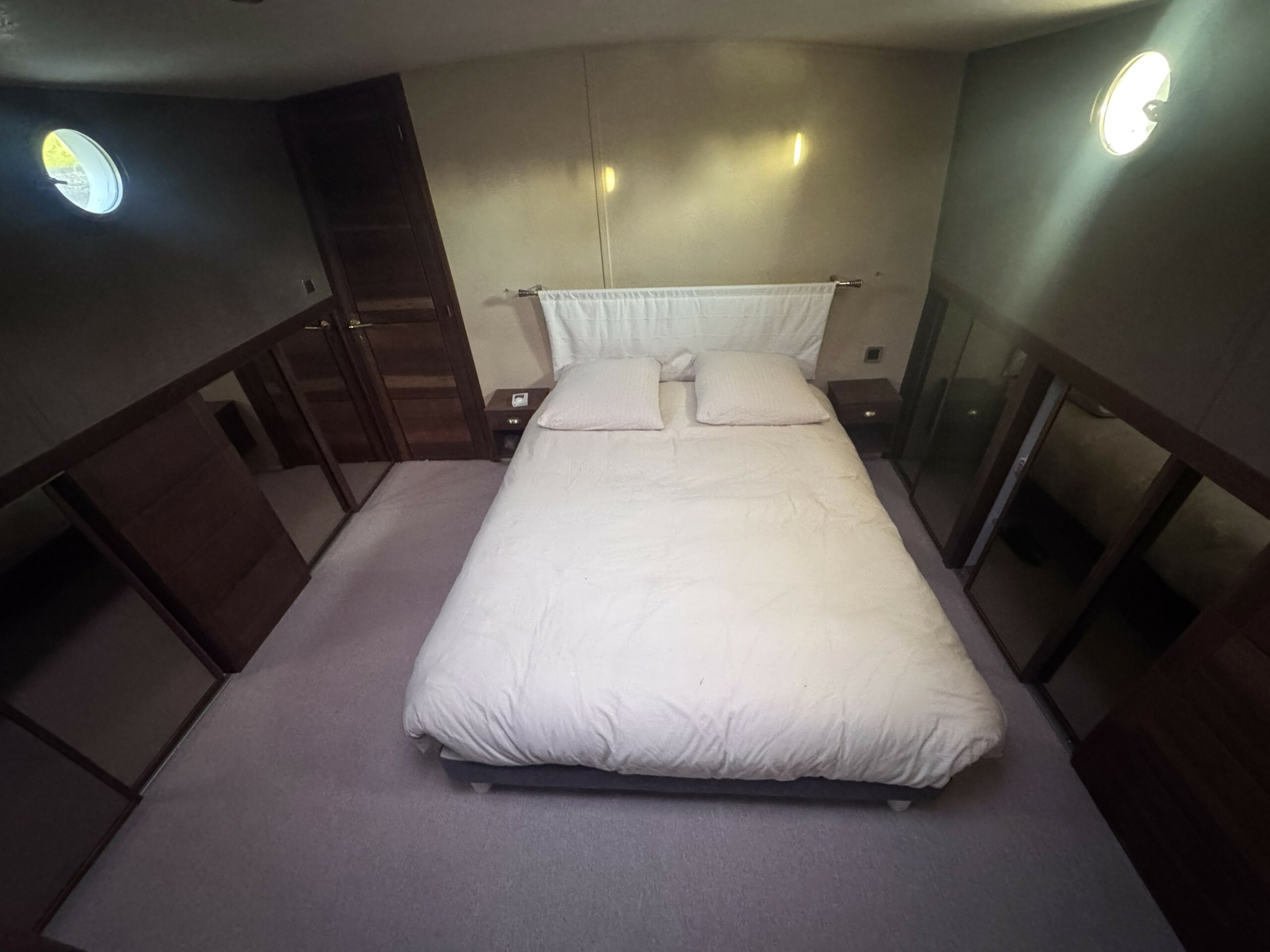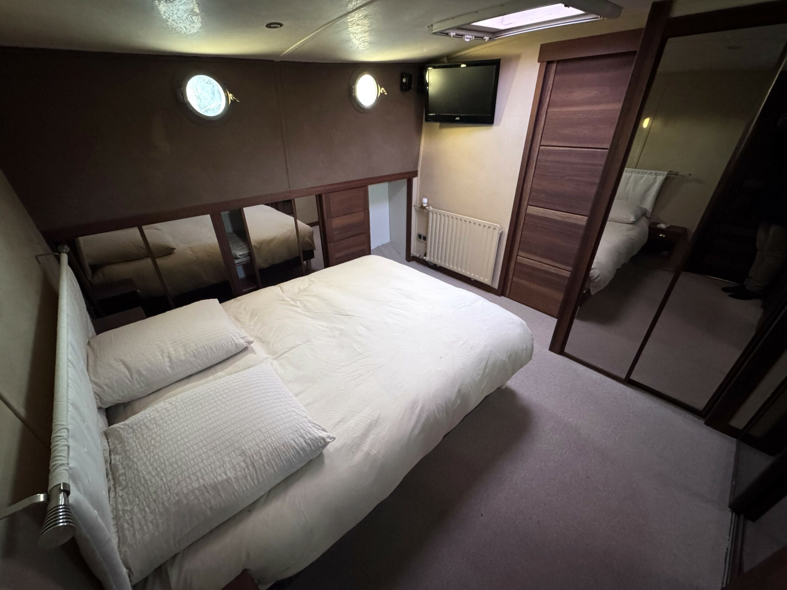 Das geräumige Steuerhaus öffnet sich zu einer großen, überdachten Außenterrasse. Im Inneren finden Sie einen hellen und großzügigen Wohn- und Essbereich sowie zwei komfortable Kabinen – eine Doppel- und eine flexible Kabine mit umwandelbaren Betten –, jeweils mit eigenem Bad, Dusche und WC.
